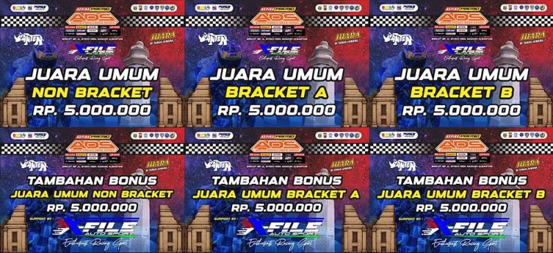 Hadiah fantastis tersebut dibagi menjadi tiga kategori Juara Umum (JU), yakni JU Non Braket, JU Braket A dan JU Braket B. Masing-masing kategori akan memperebutkan hadiah Rp10 juta, terdiri dari Rp5 juta hadiah utama ditambah bonus Rp5 juta.
