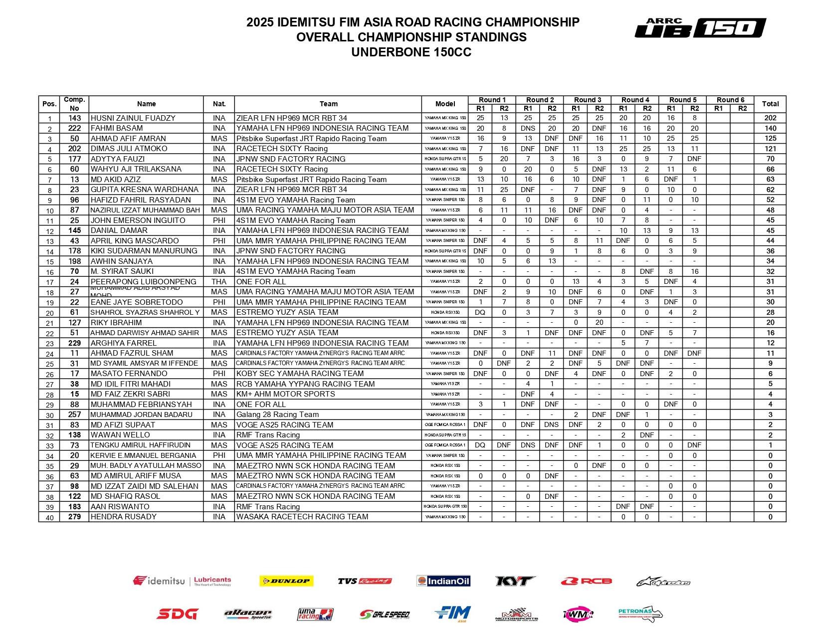 BeritaBalap.com-Selamat untuk kesuksesan tim Ziear LFN HP969 MCR RBT34 dengan manajer tim Yawan YDJ14 yang berhasil membawa Husni Zainul Fuady (Alfi Husni) meraih juara umum UB150 balap Asia Road Racing Championship 2025 (ARRC 2025).