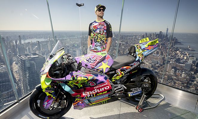 BeritaBalap.com-Tim Pertamina Enduro VR46 tampil dengan livery khusus dalam seri ke-3 MotoGP 2026 di Austin USA, akhir pekan ini (27-29 Maret). Desain khusus ini didedikasikan untuk sejarah tim dan ini dihadirkan di Edge at Hudson New York dengan latar belakang Manhattan.