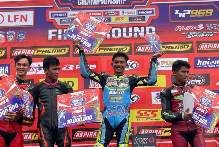 BeritaBalap.com- Pembalap asal Karawang, Rio Andriyanto berhasil memenangi duel panas kelas Bebek 130cc (Eks MP2) Expert di Final LFN HP969 Road Race Championship 2025. Gelaran balap tersebut berlangsung seru diatas lintasan GBT, Surabaya (9/11).
