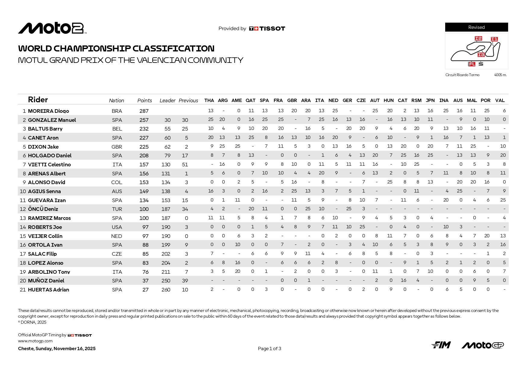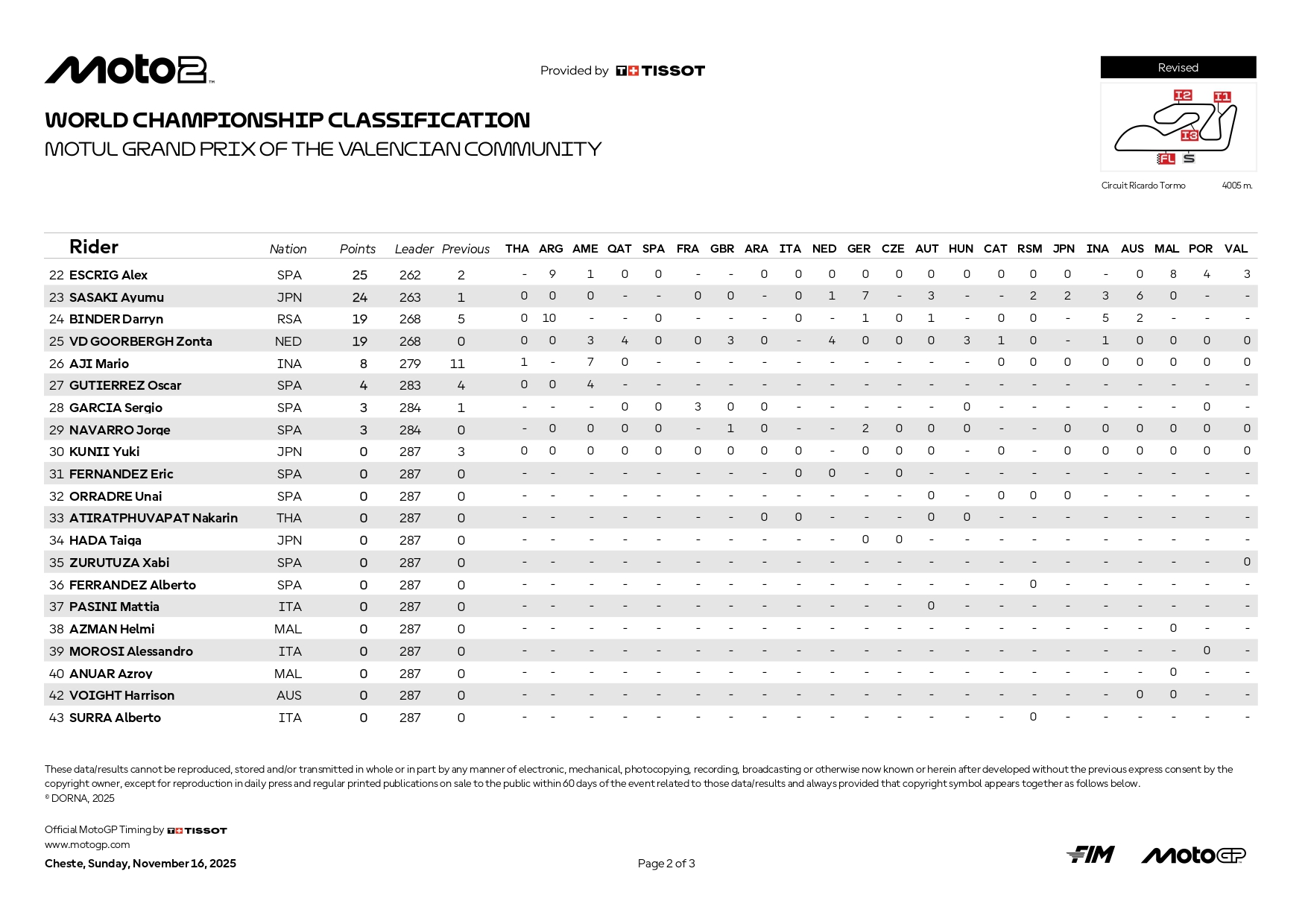 BeritaBalap.como-Berakhir sudah perjalanan balap Moto2 rider tanah air Mario Aji. Finish ke-17 saat seri final Moto2 Valancia, Spanyol, Minggu (16 November) dan posisi ke-26 dalam klasemen akhir Moto2 musim 2025.