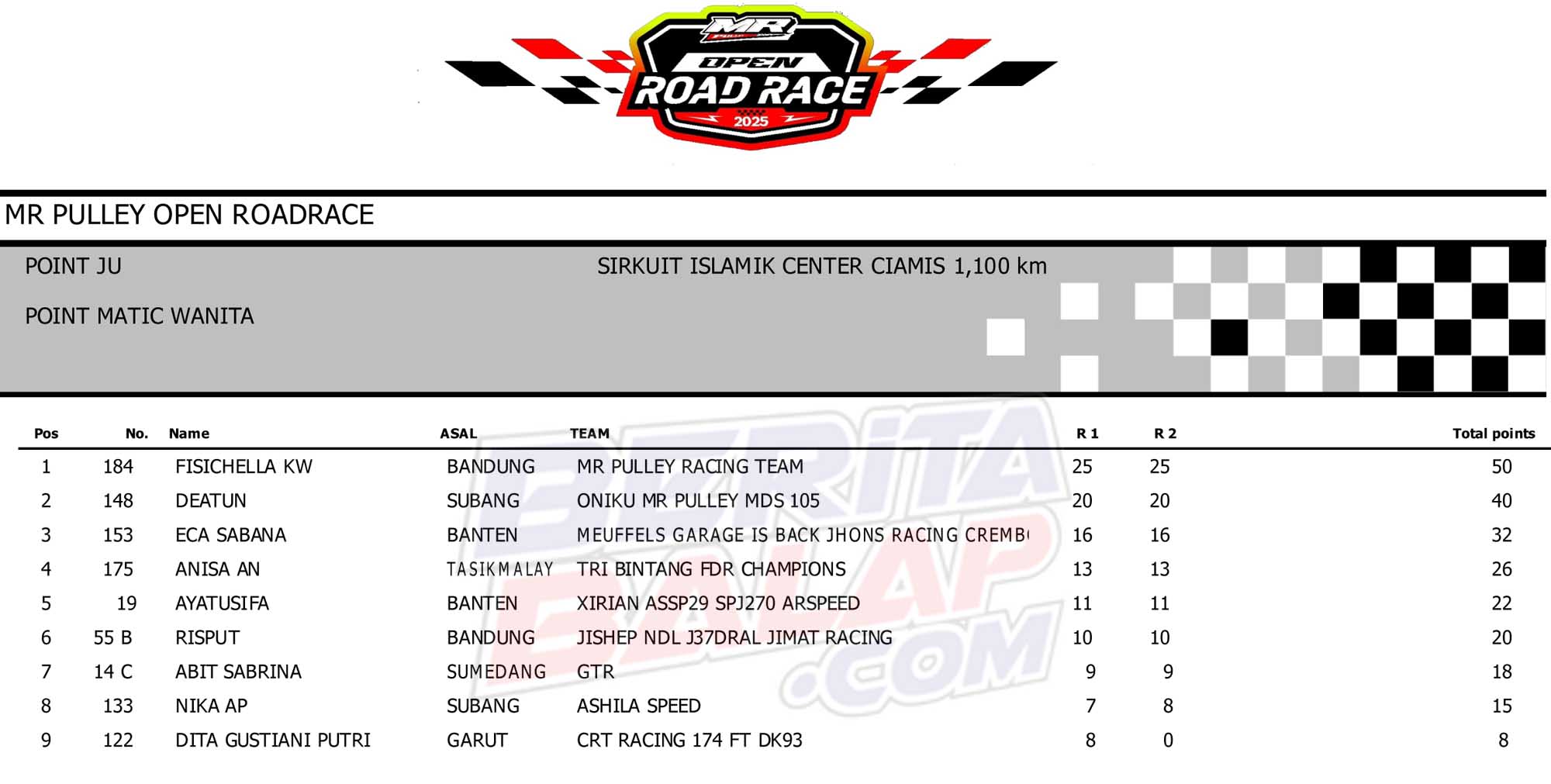 BACAJUGA : Hasil Juara Lengkap MR Pulley Open Road Race 2025 Ciamis