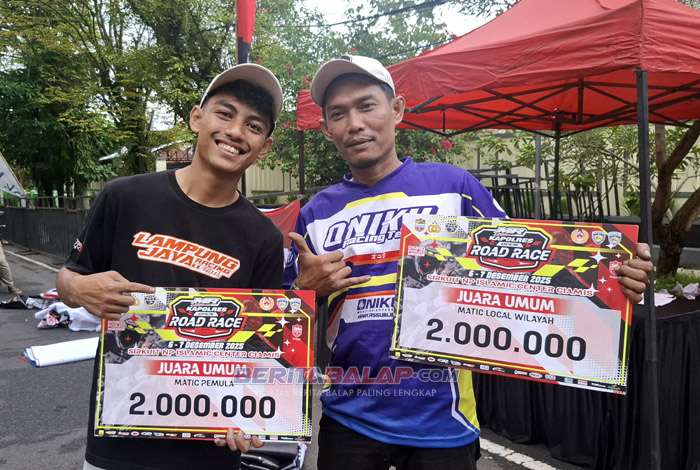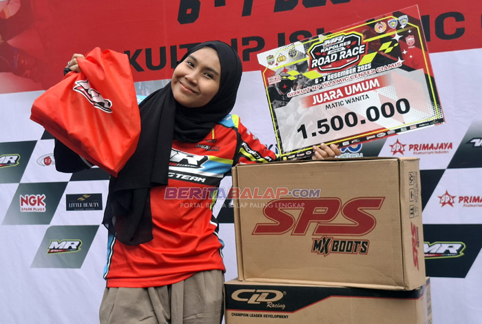 BeritaBalap.com- Edun…! MDR Racing Boyong 3 Juara Umum (JU) Matic dengan poin nyaris sempurna diajang MR Pulley Open Road Race 2025 yang telah sukses di tayangkan dilintasan non permanen Islamic Center, Cimais pada 6-7 Desember lalu.