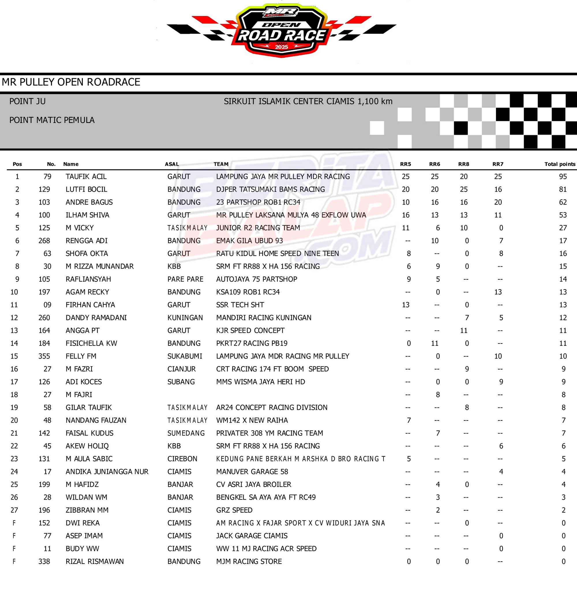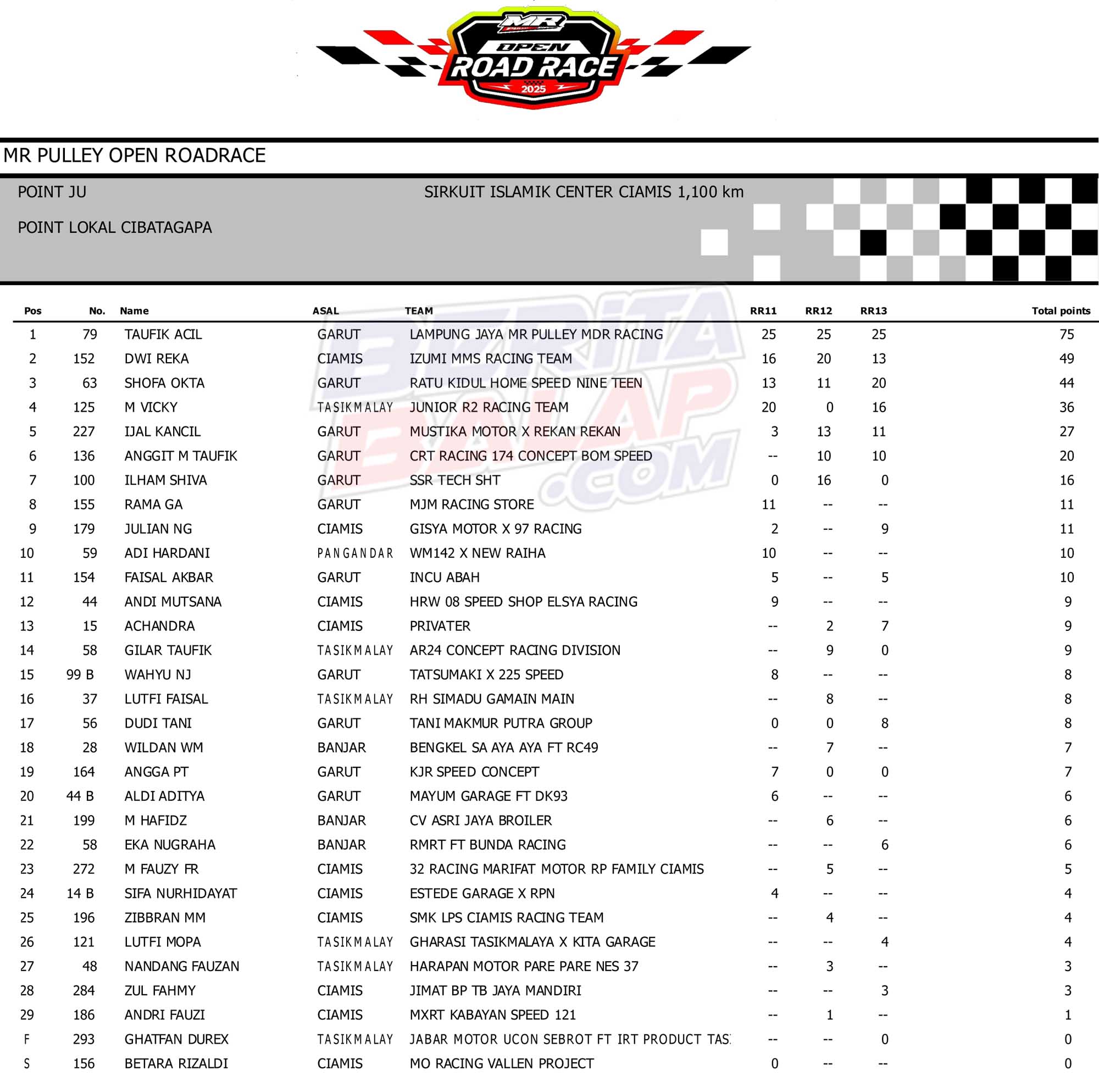 BACAJUGA : Hasil Juara Lengkap MR Pulley Open Road Race 2025 Ciamis