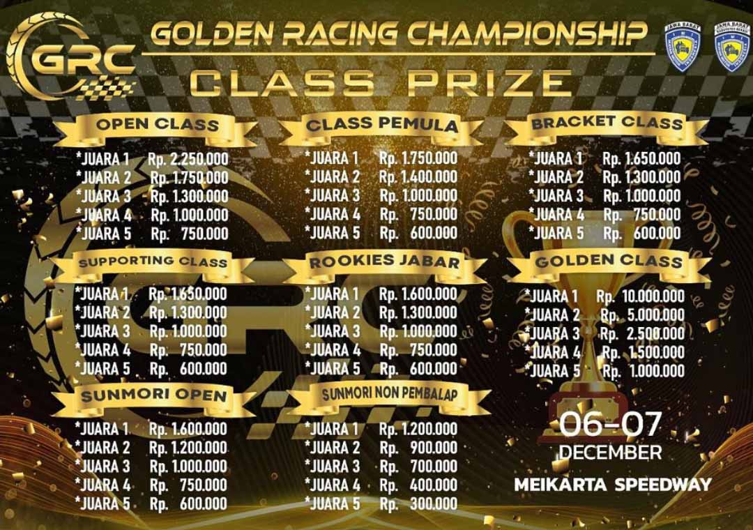 Dengan hadiah yang memanjakan setiap peraih podium kehormatan disetiap kelasnya, partai final ini jelas akan menjadi pembuktian siapa joki dan tim terbaik. Peraih Juara Umum (JU) pada kategori Open, Pemula, Sunmori Open, Rookies Jabar, Matic dan Bracket bakal langsung diganjar bonus uang jajan tambahan.