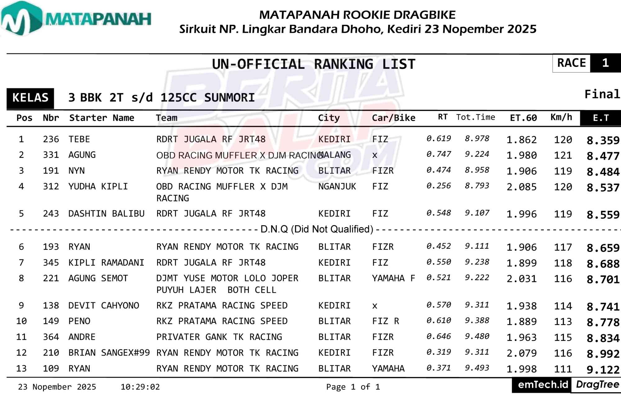 BACA JUGA : Hasil Juara Lengkap Matapanah Rookie Drag Bike 2025 Kediri
