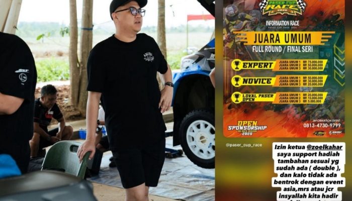 BeritaBalap.com- Haji Putra kasih spesial lagi. Kasih double hadiah Juara Umum (JU) gelaran Paser Cup Race 2026 (Kaltim). Jadi Hadiah tambah 100 persen. Mantap.