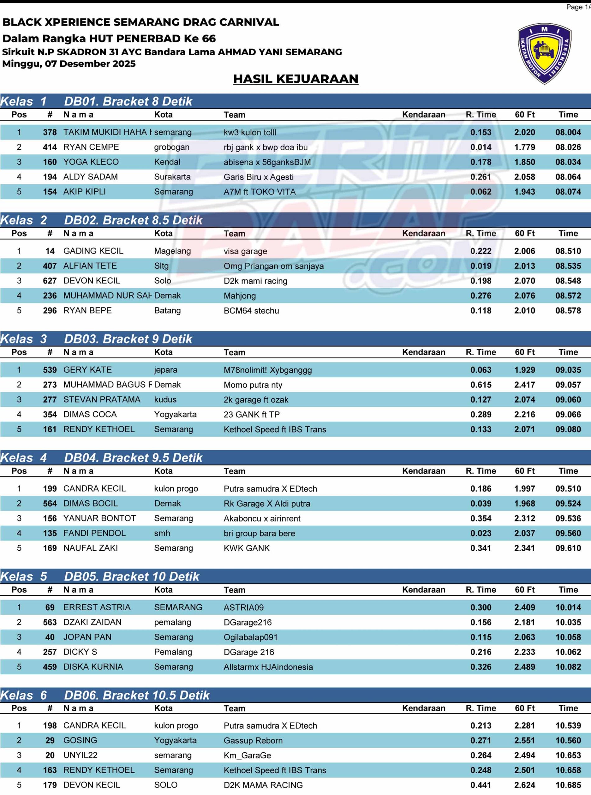 BeritaBalap.com- Berikut ini adalah hasil juara Black Xperience Semarang Drag Bike Carnival 2025 yang berlangsung di sirkruit NP Skadron 31 AYC Bandara Lama Ahmad Yani Semarang pada Minggu, 7 Desember. Edhot