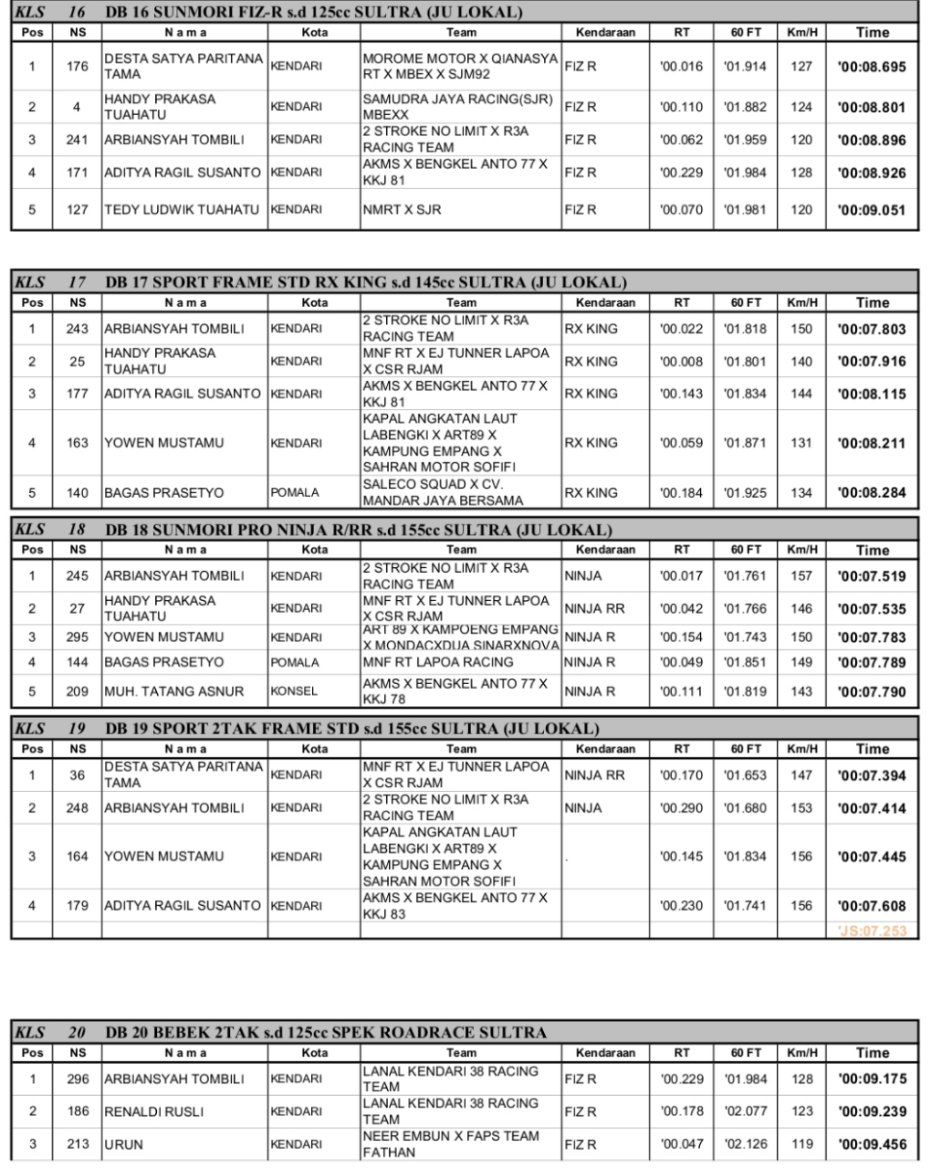 Dragbike Headline 3 November, 2025 Hasil Juara Danlanal Kendari Cup 1 Drag Bike 2025 Posted By: BeritaBalap.com Hasil Danlanal Kendari Cup 1 Drag Bike 2025, Hasil Drag Bike 2025 Kendari, Hasil Drag Bike Kendari, Hasil Juara Danlanal Kendari Cup 1 Drag Bike 2025 BeritaBalap.com- Berikut ini adalah hasil juara Danlanal Kendari Cup 1 Drag Bike 2025 yang berlangsung di lintasan NP Ring Road Kendari (1-2/10). Edhot Facebook Comments