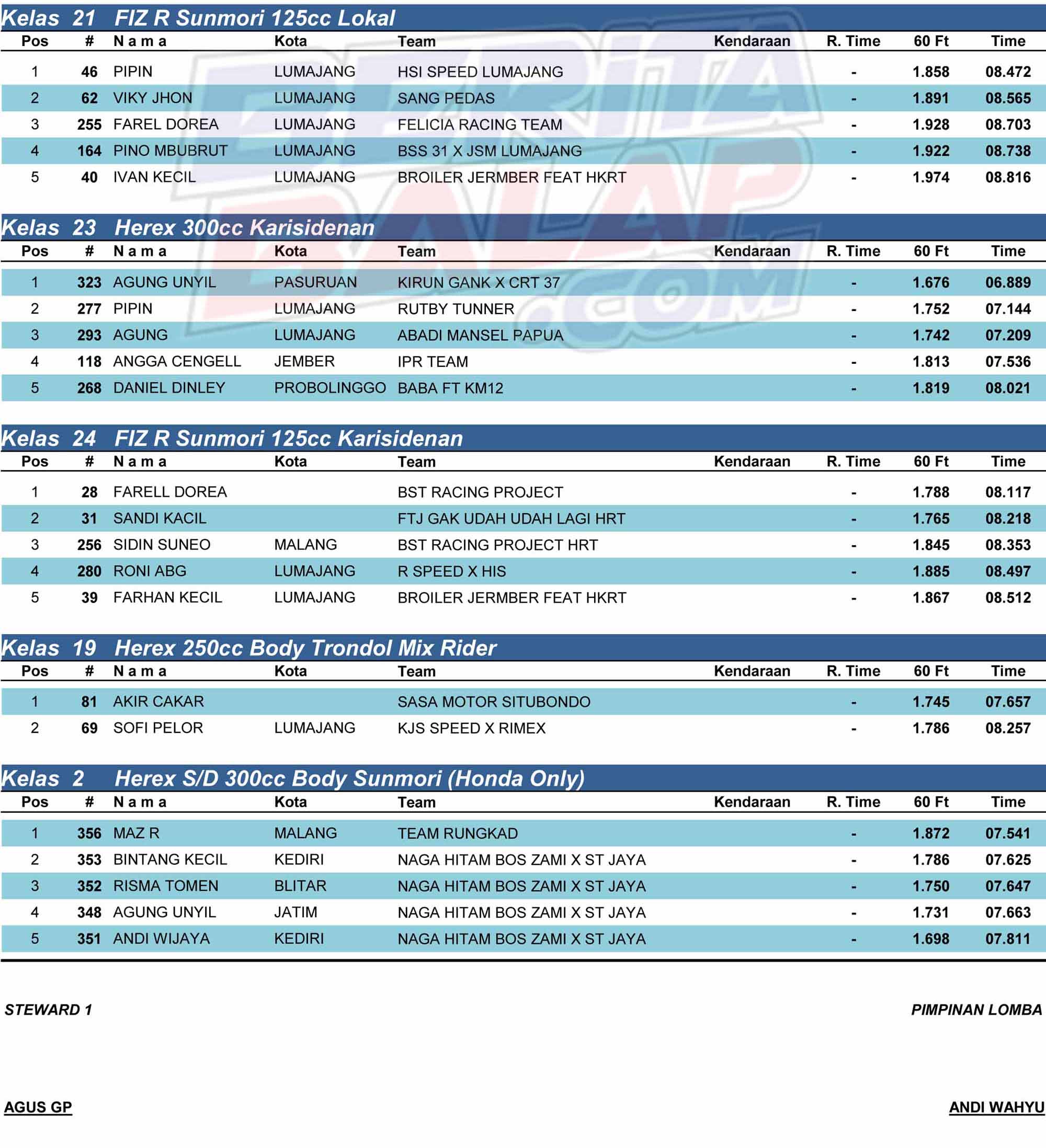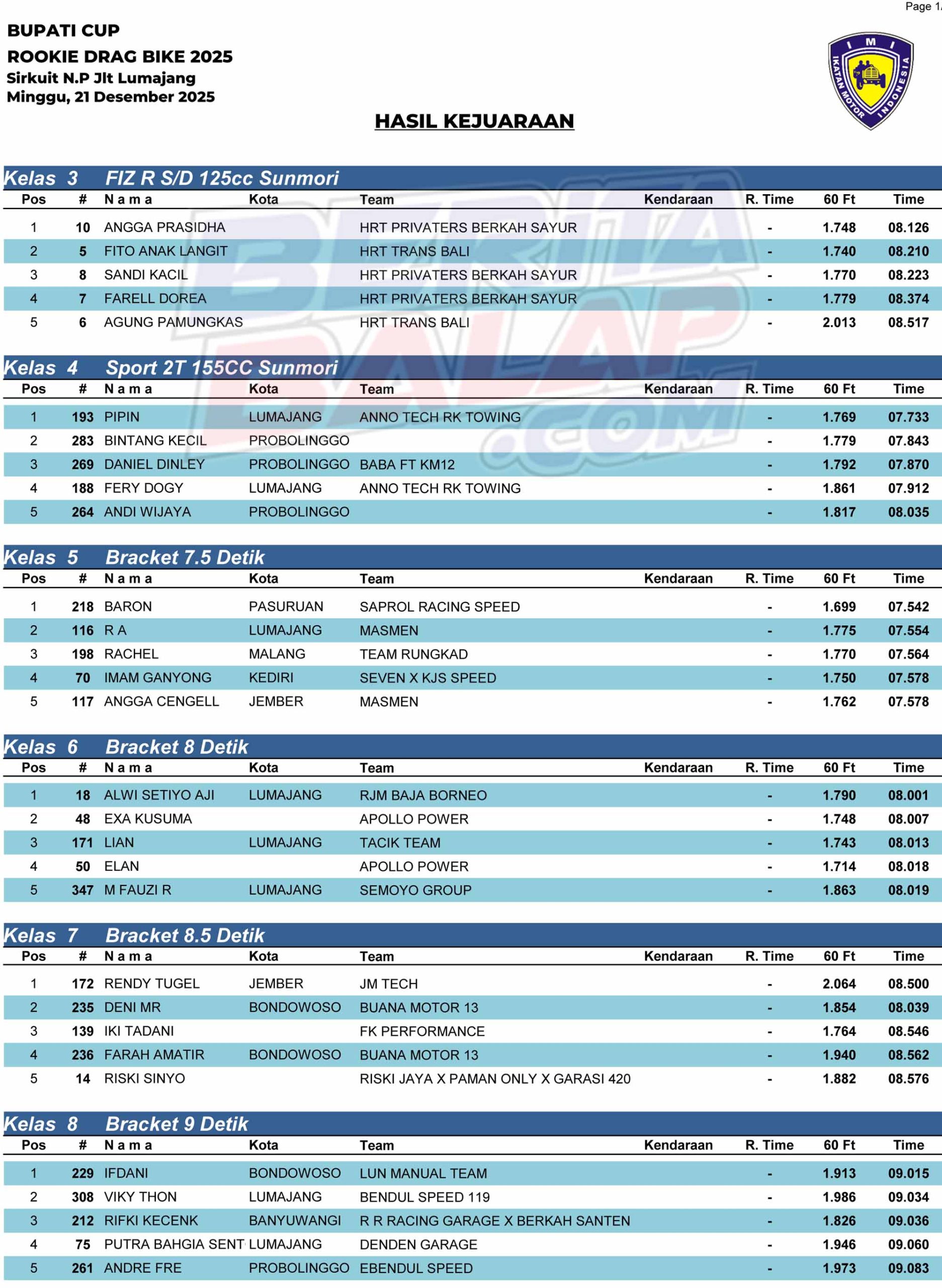 Dragbike Headline 21 Desember, 2025 Hasil Juara Dragbike Rookie 2025 Lumajang Posted By: BeritaBalap.com Hasil Dragbike Rookie 2025 Lumajang, Hasil Juara Dragbike Rookie 2025 Lumajang BeritaBalap.com- Berikut ini adalah hasil juara Dragbike Rookie 2025 yang berlangsung disirkuit NP JLT Lumajang pada Minggu, 21 Desember. Cdr Facebook Comments