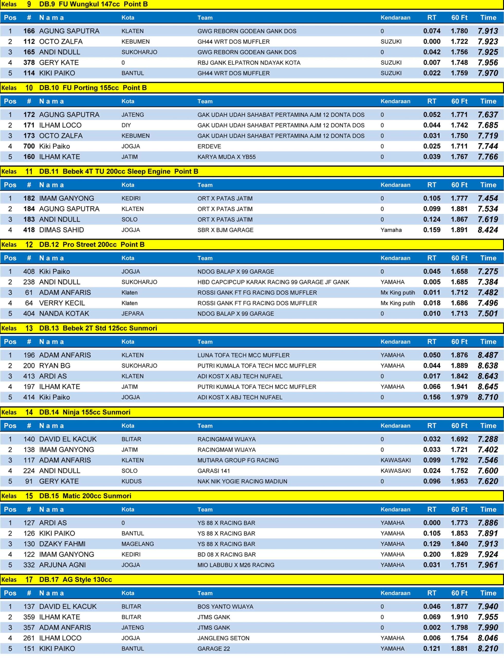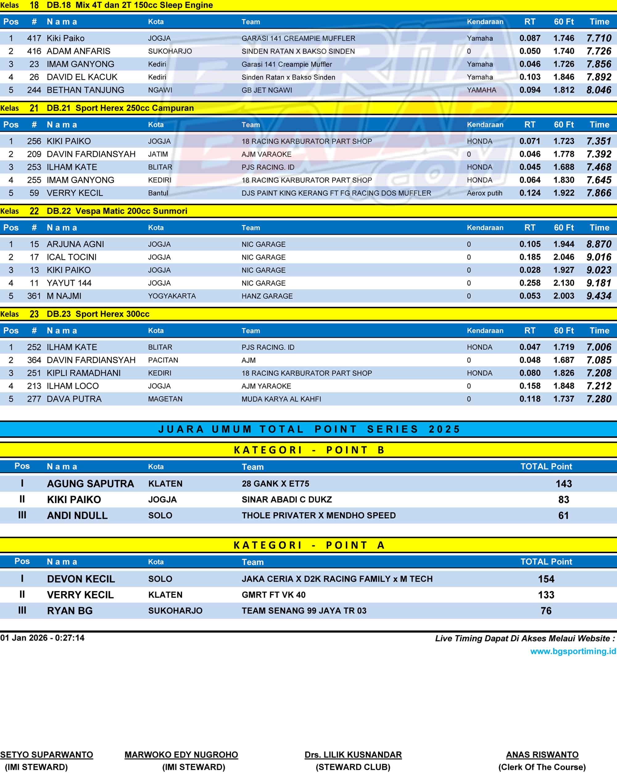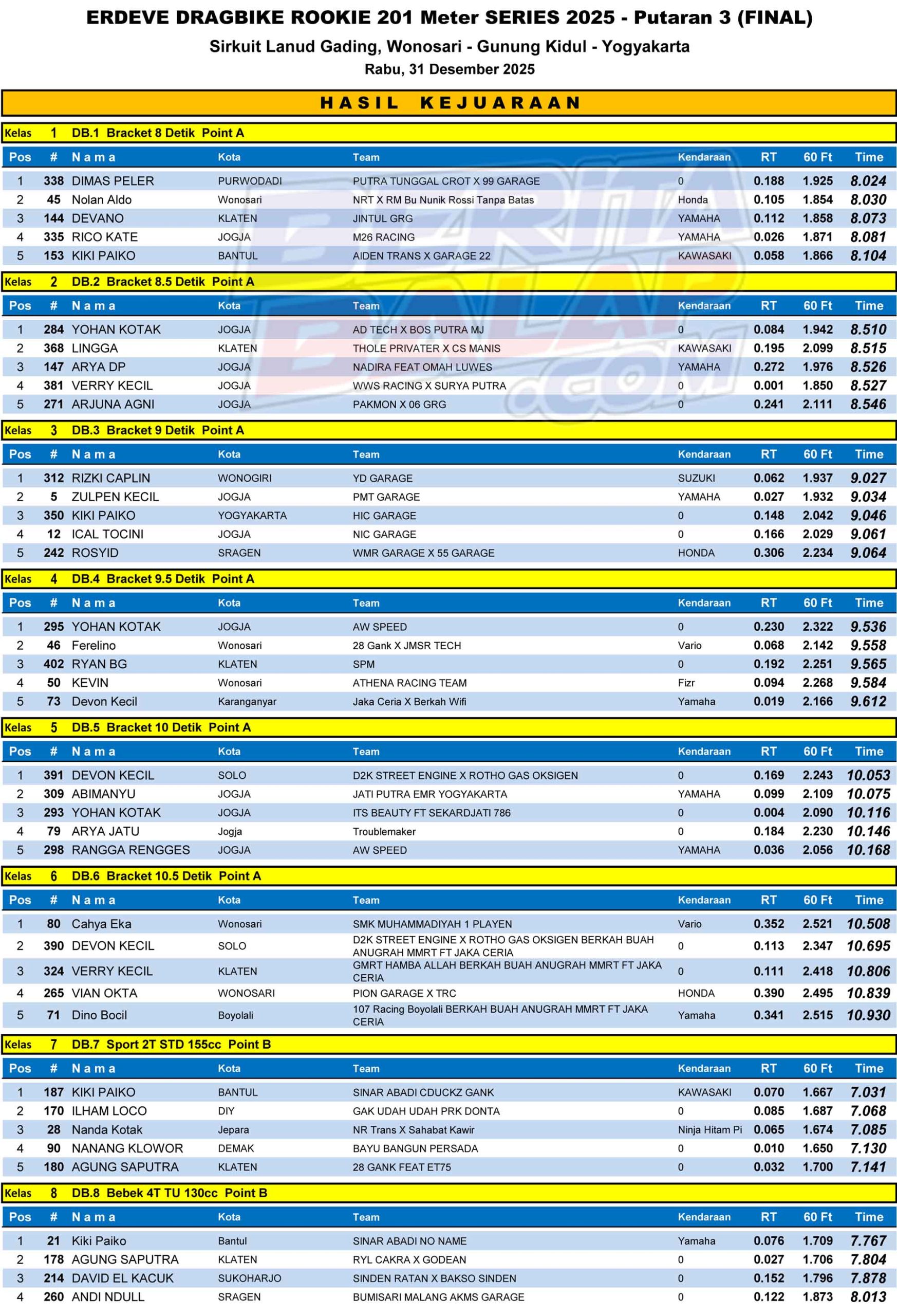 Dragbike Headline 1 Januari, 20261 Januari, 2026 Hasil Juara Final Erdeve Dragbike Rookie 2025 Jogja (31 Des) Posted By: BeritaBalap.com Hasil Final Erdeve Dragbike Rookie 2025, Hasil Juara Final Erdeve Dragbike Rookie 2025 Jogja, Hasil Juara Final Erdeve Dragbike Rookie 2025 Jogja (31 Des) BeritaBalap.com- Berikut ini adalah hasil juara final Erdeve Dragbike Rookie 2025 yang berlangsung dilintasan non permanen Lanud Gading, Wonosari, Jogjakarta pada Rabu, 31 Desmeber. R 4 NU Facebook Comments