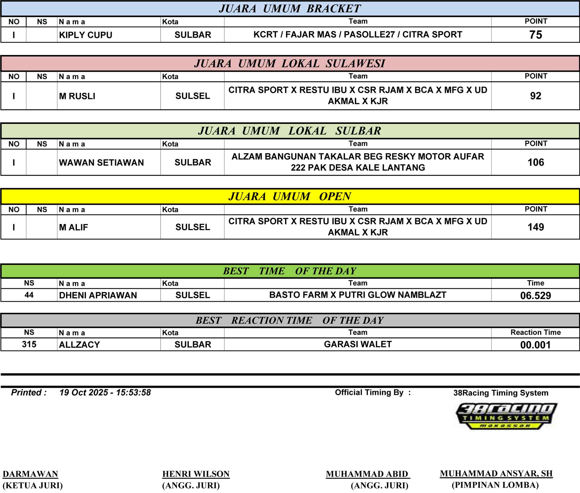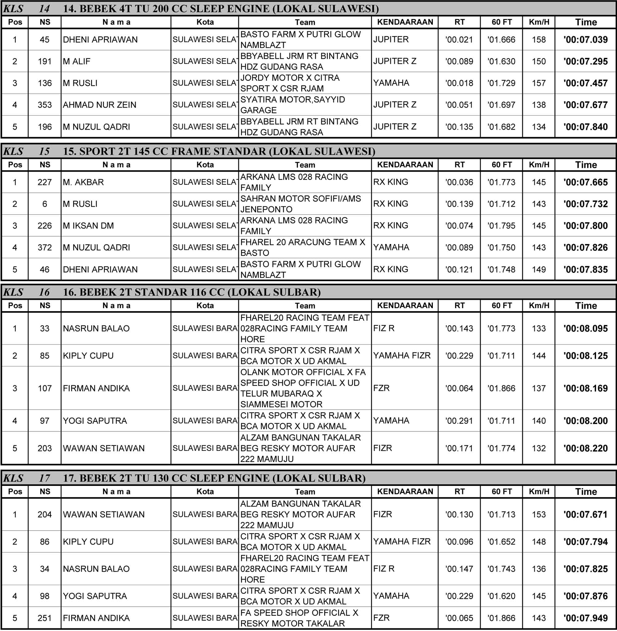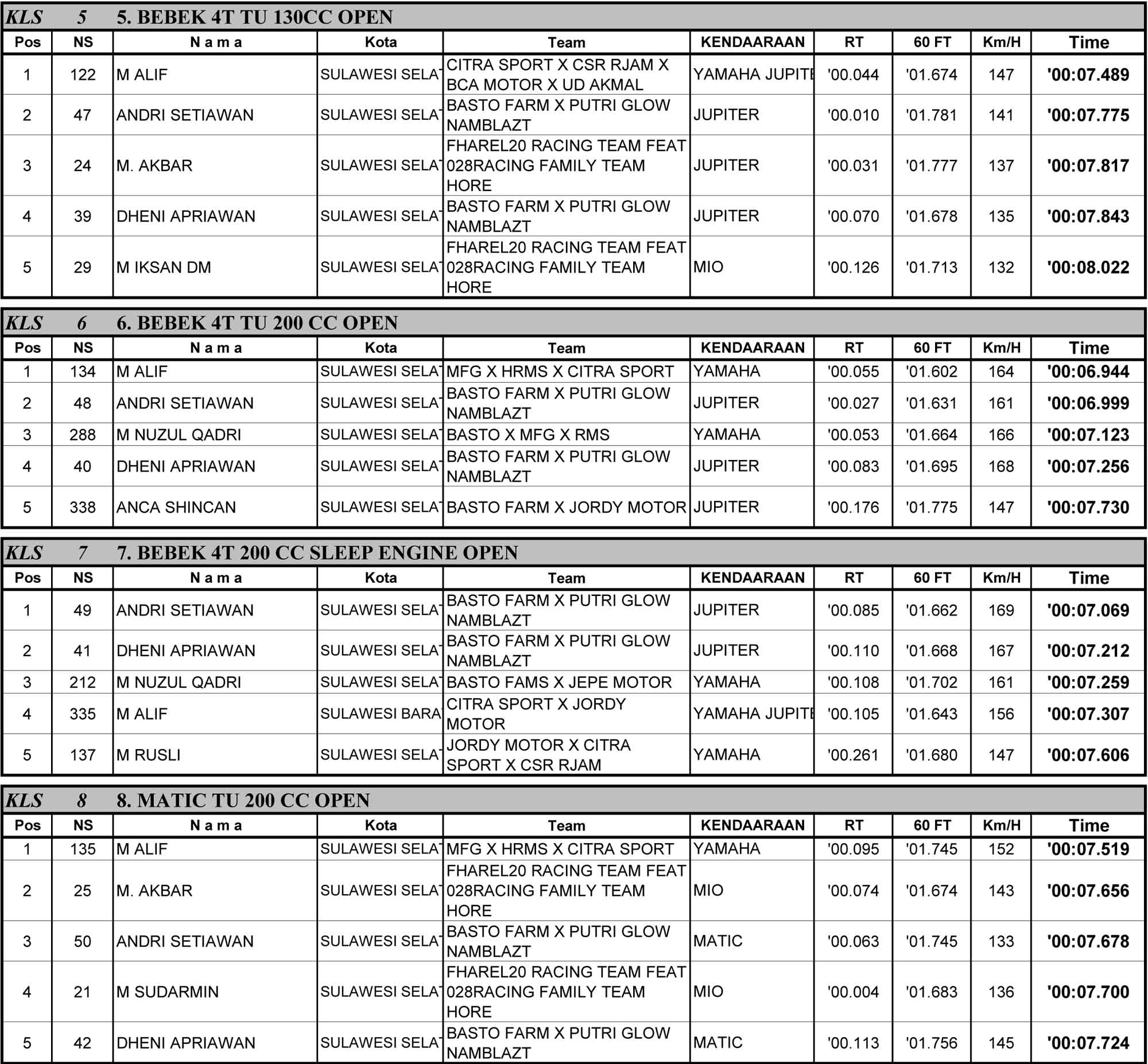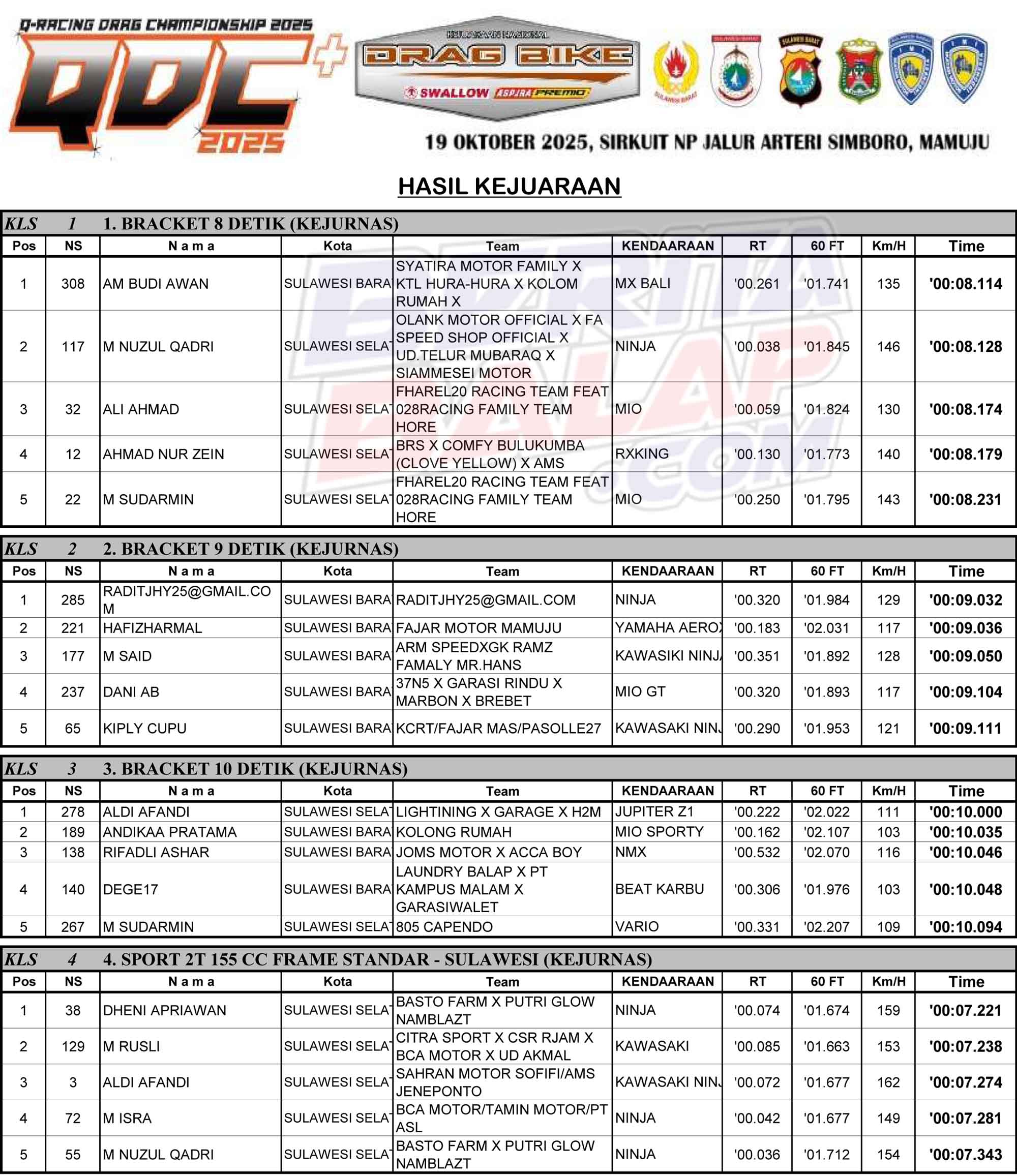 Dragbike Headline 19 Oktober, 2025 Hasil Juara Kejurnas Drag Bike 2025 Mamuju Posted By: BeritaBalap.com Hasil Juara Kejurnas Drag Bike 2025 Mamuju, Hasil Kejurnas Drag Bike 2025, Hasil Kejurnas Drag Bike 2025 Mamuju BeritaBalap.com- Berikut ini adalah hasil Kejurnas Drag Bike 2025 yang berlangsung di Sirkuit NP Jalur Arteri Simboro, Mamuju, Sulawesi Barat pada Minggu, 19 Oktober. Edhot Facebook Comments