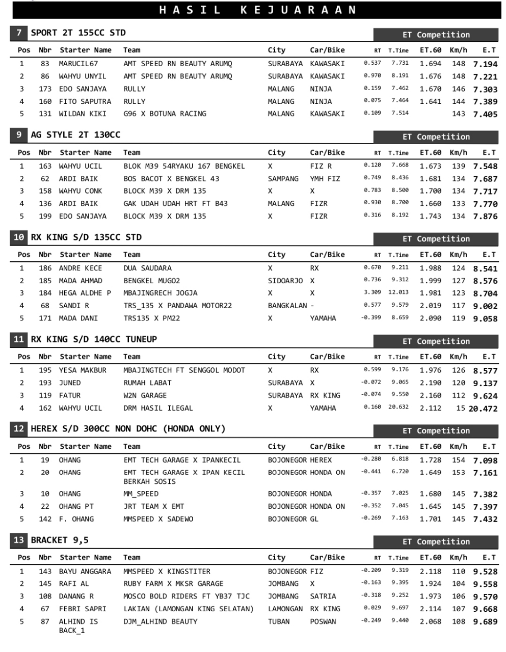 Headline Road Race 7 Februari, 20267 Februari, 2026 Hasil Juara King Of Dragbike Kapolrestabes Surabaya 2026 Posted By: BeritaBalap.com Hasil Juara King Of Dragbike Kapolrestabes Surabaya 2026, Hasil King Of Dragbike Kapolrestabes Surabaya 2026, King Of Dragbike Kapolrestabes Surabaya 2026 BeritaBalap.com- Berikut ini adalah hasil juara Kong Of a Dragbike Kapolrestabes Surabaya 2026 yang berlangsung di sirkuit Gelora Bung Tomo, Surabaya pada Sabtu, 7 Februari. cdr