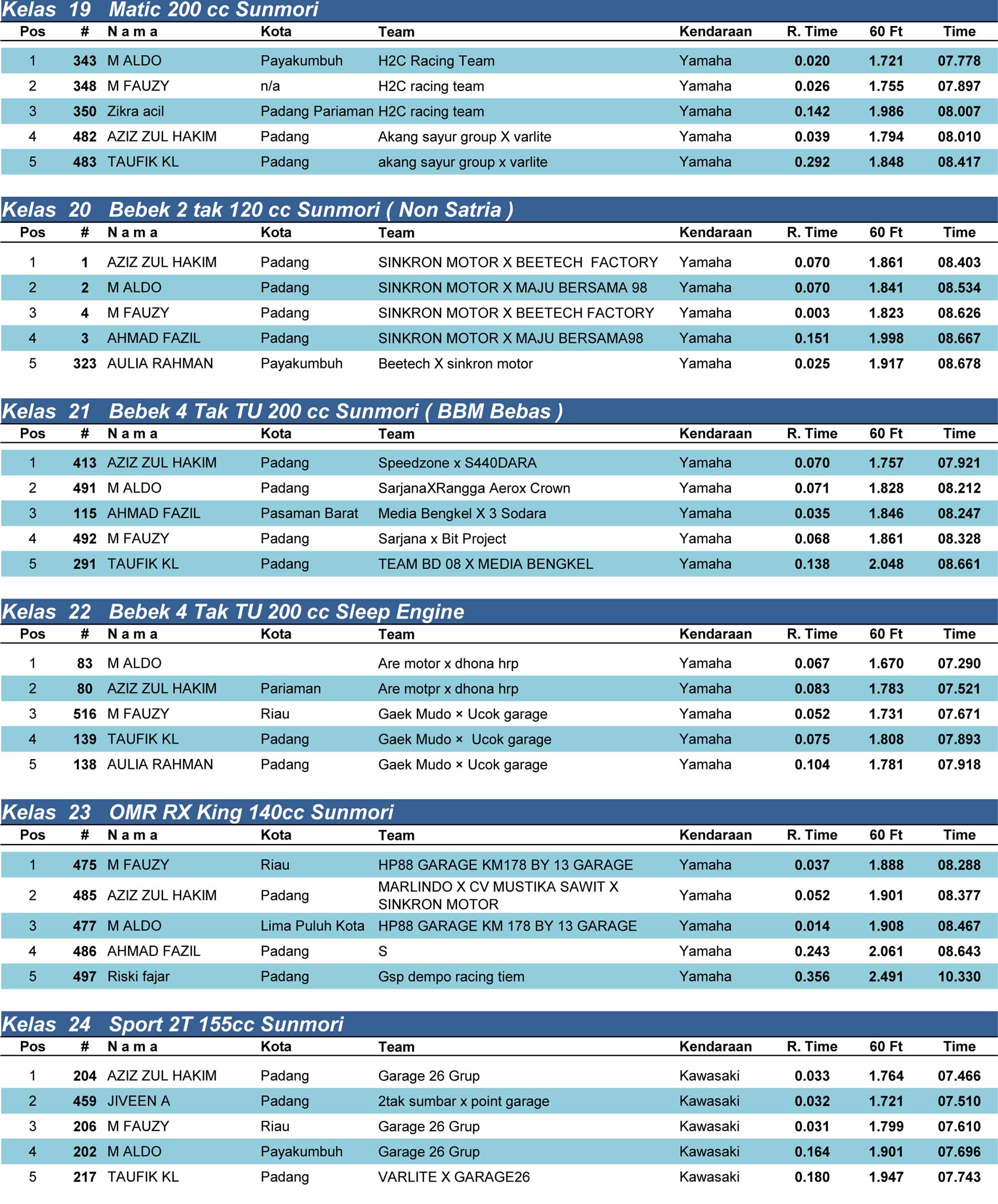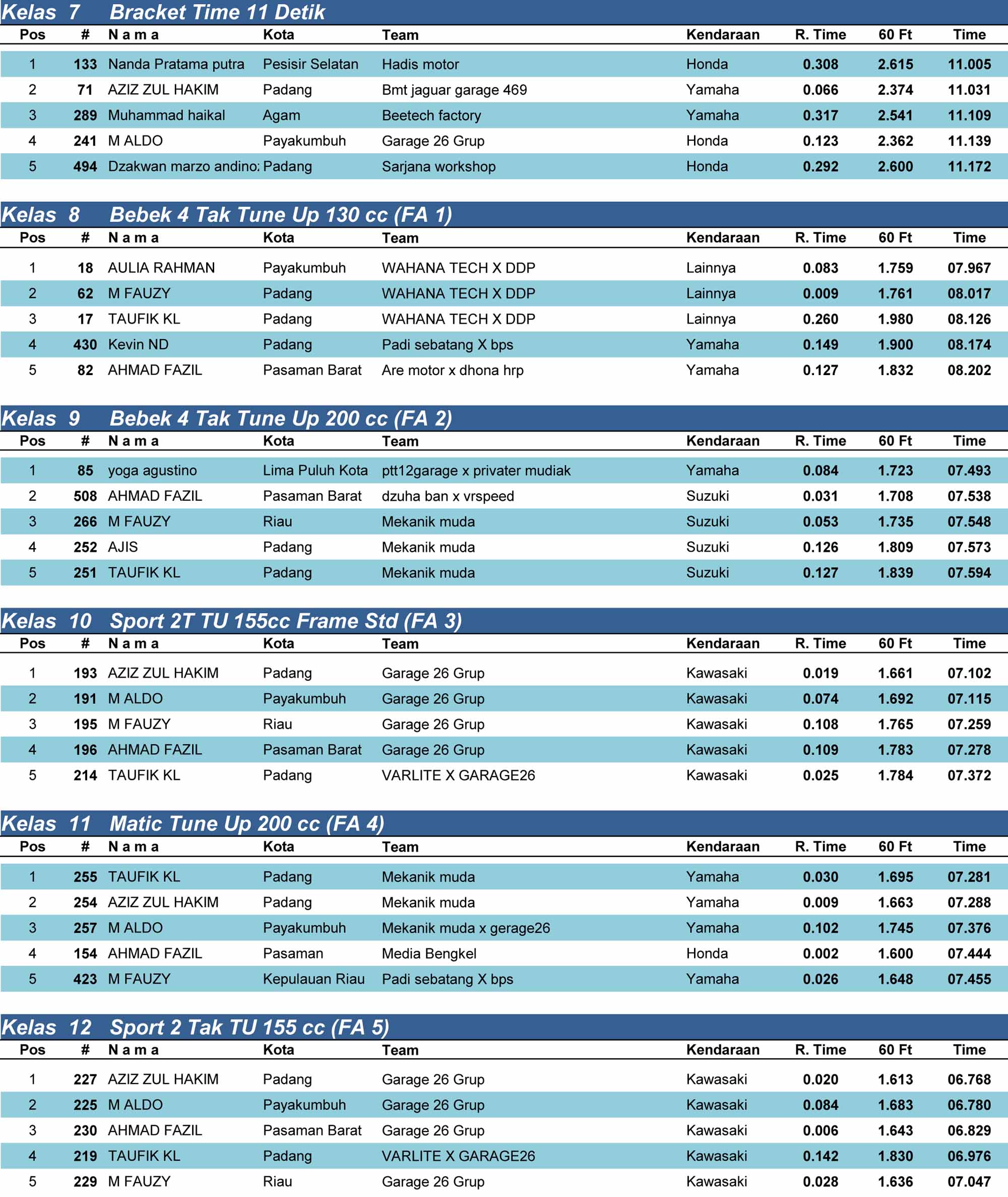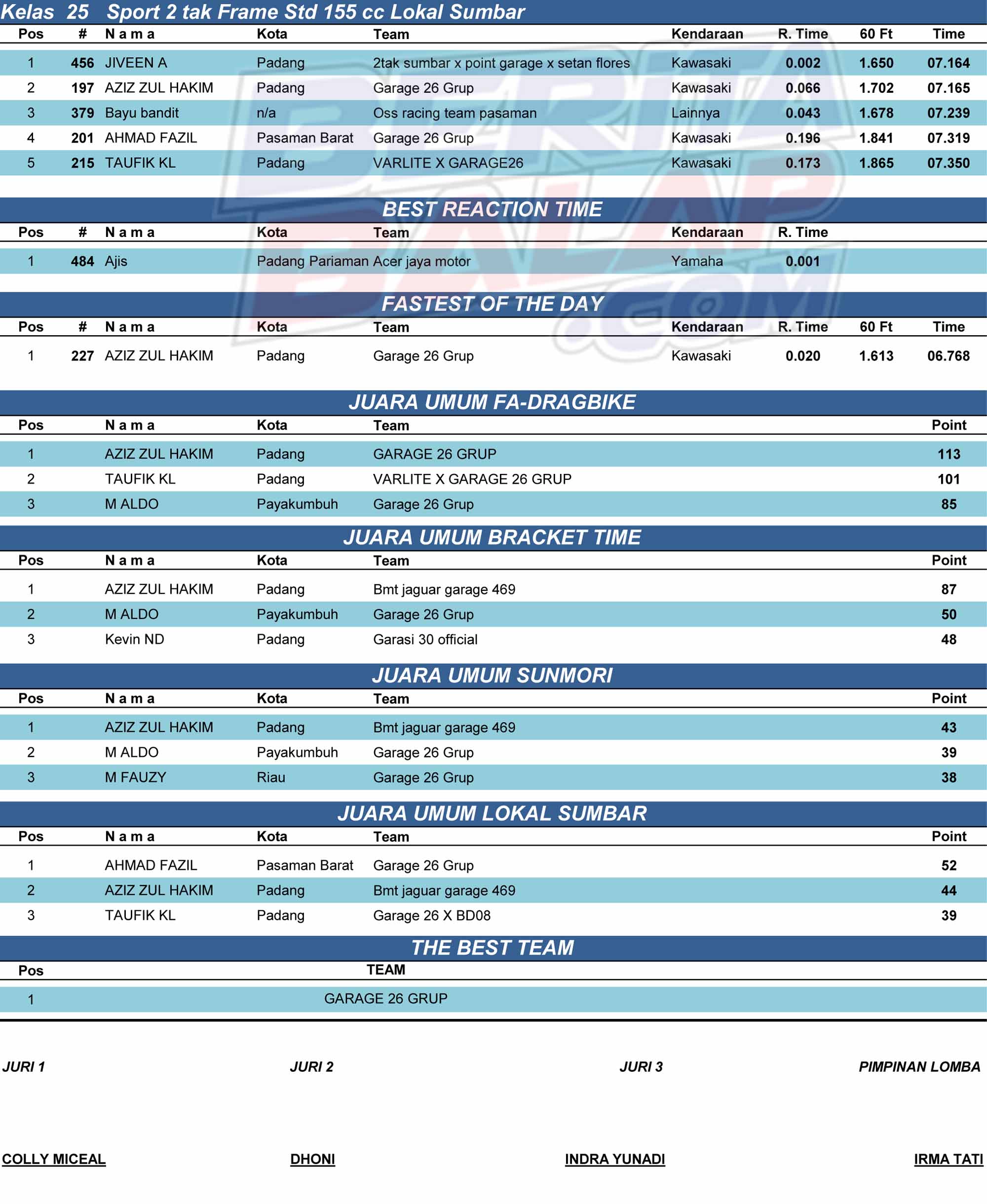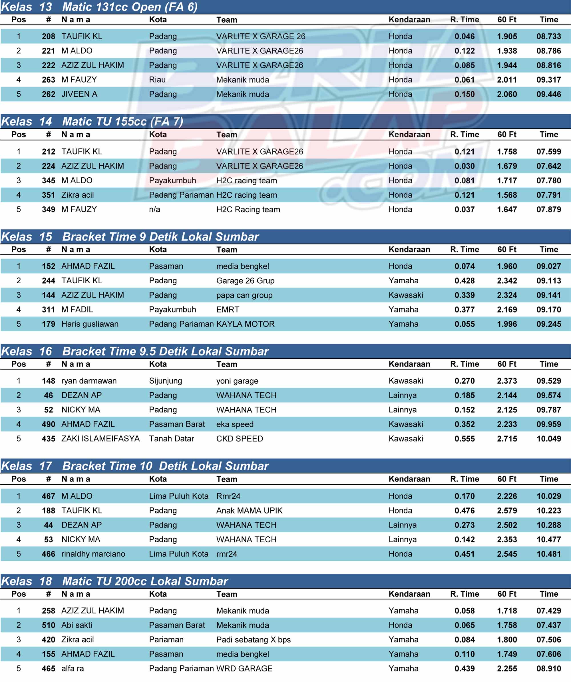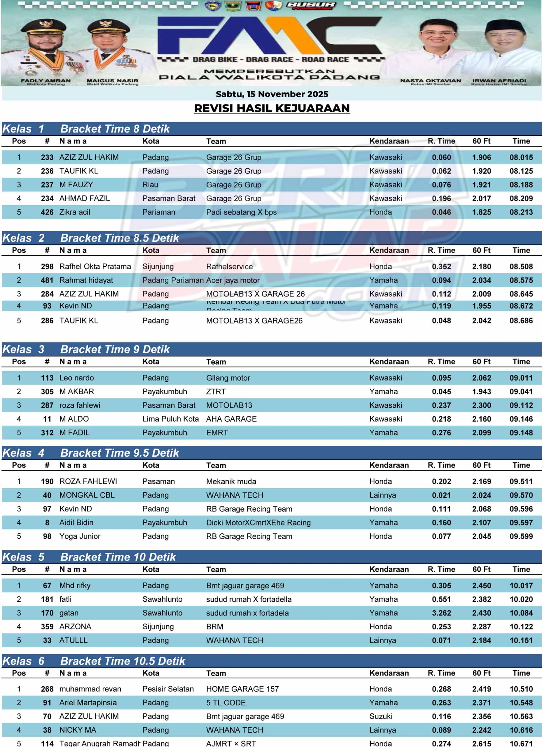 Dragbike Headline 16 November, 2025 Hasil Juara Lengkap FMC Drag Bike 2025 Padang Posted By: BeritaBalap.com Hasil FMC Drag Bike 2025 Padang, Hasil Juara FMC Drag Bike 2025 Padang, Hasil Juara Lengkap FMC Drag Bike 2025 Padang BeritaBalap.com- Berikut ini adalah hasil juara lengkap FMC Drag Bike 2025 yang berlangsung di Lanud Sutan Sjahrir Padang pada Sabtu, 15 November. Edhot Facebook Comments