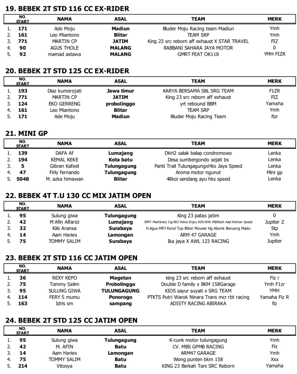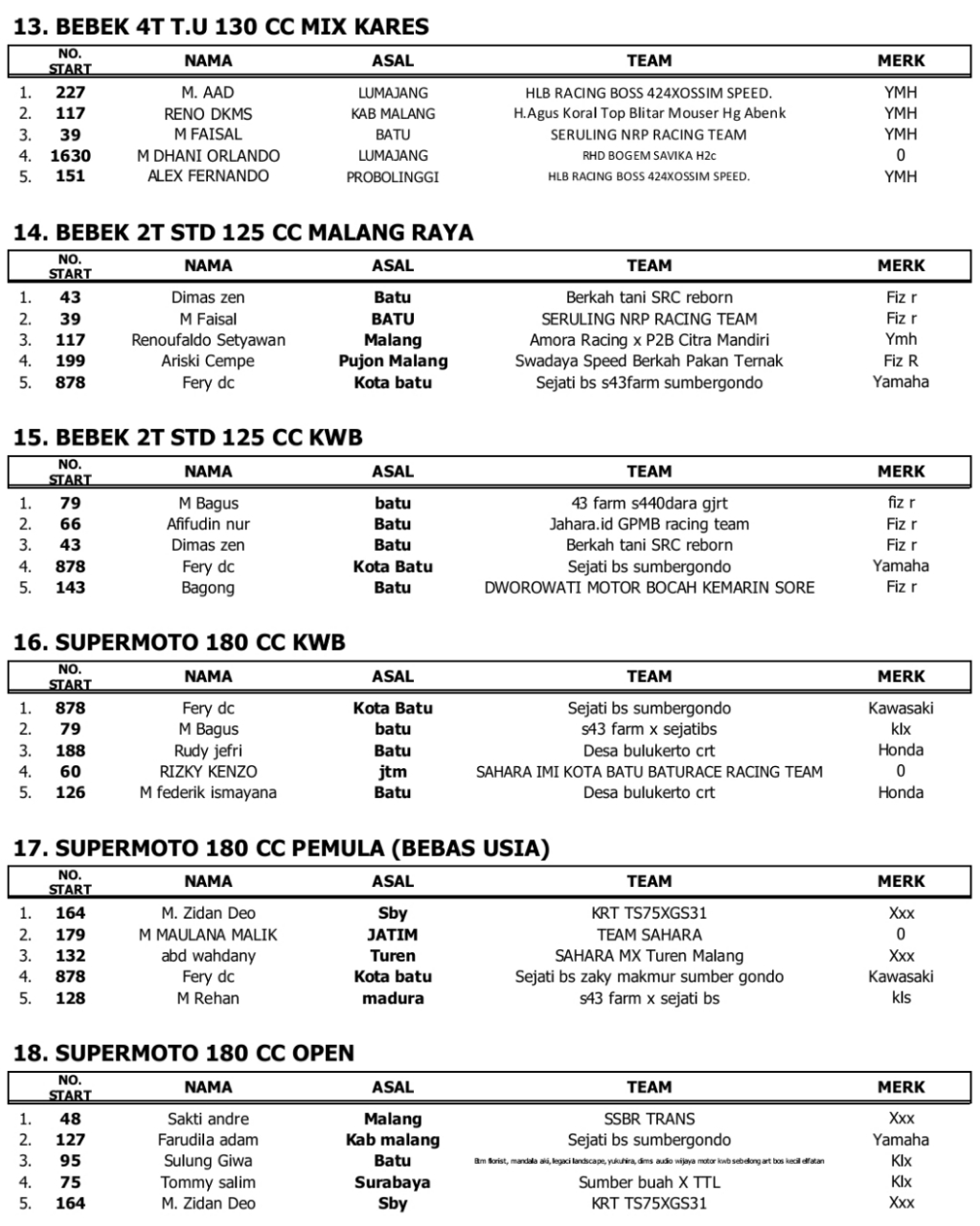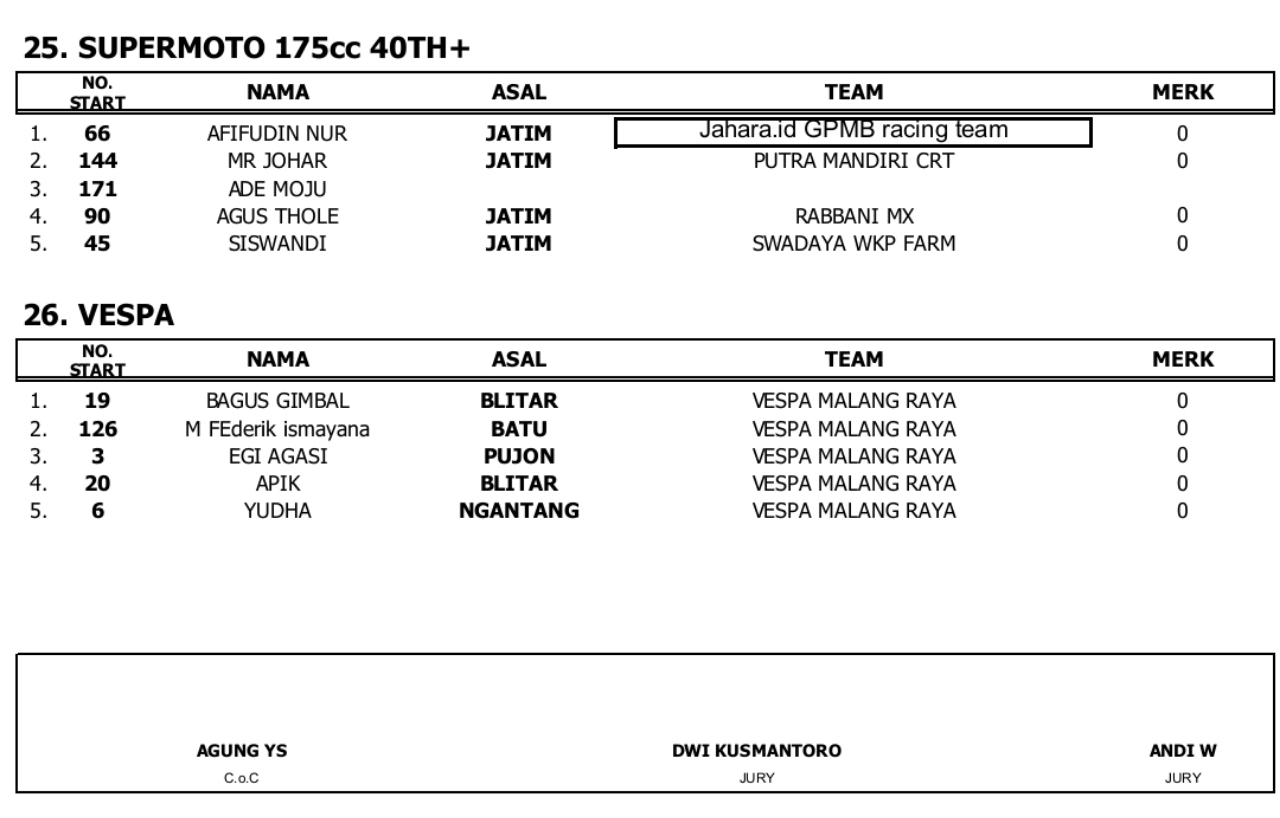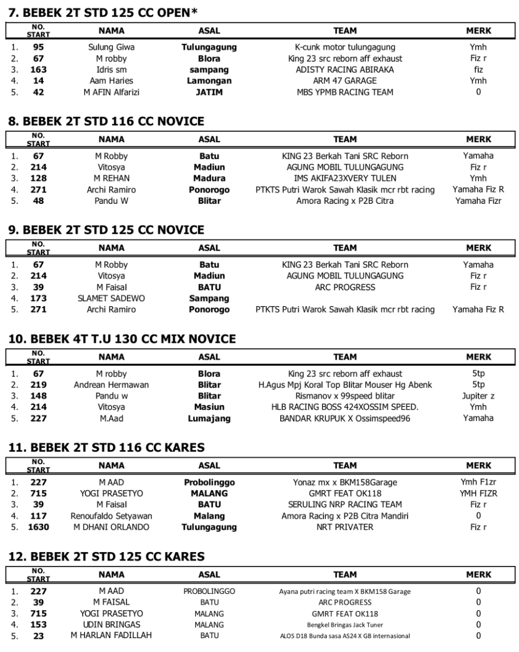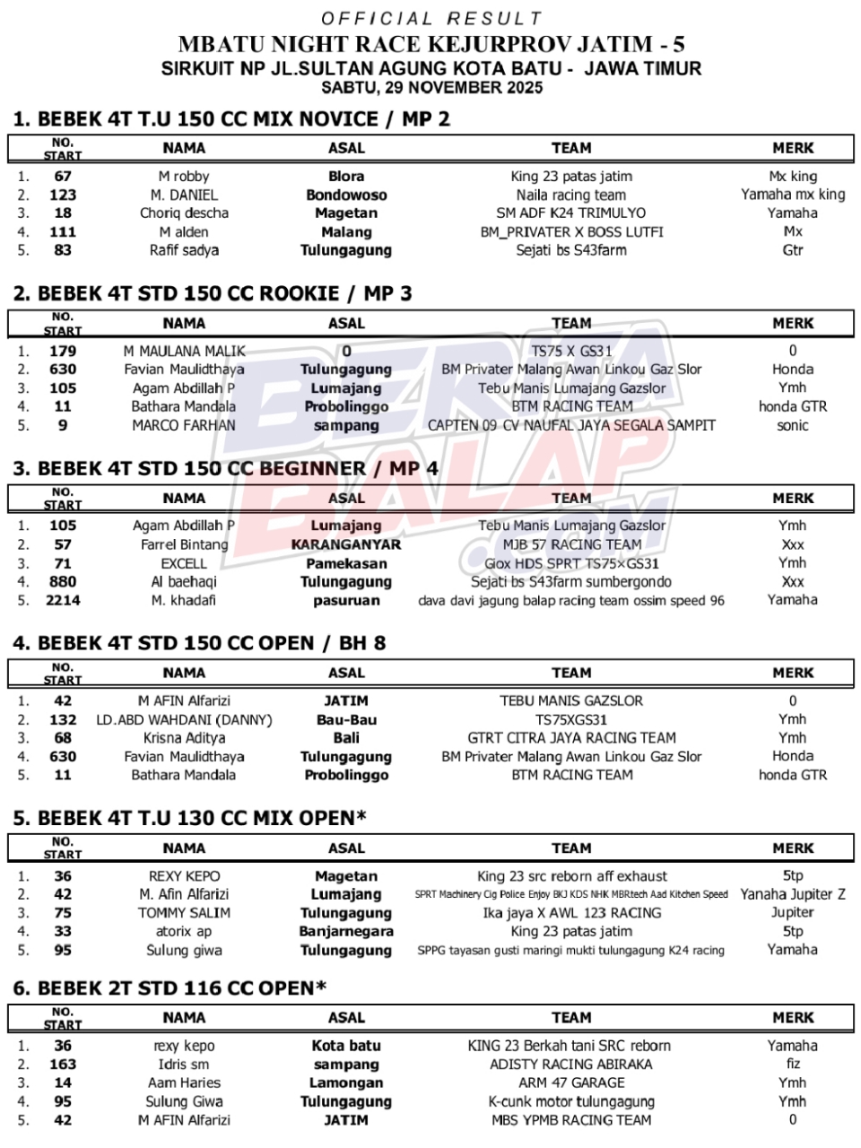 Headline Road Race 1 Desember, 2025 Hasil Juara Lengkap Mbatu Night Race Kejurprov Jatim 2025 Posted By: BeritaBalap.com Hasil Juara Lengkap Mbatu Night Race Kejurprov Jatim 2025, Hasil Kejurprov Jatim 2025, Hasil Mbatu Night Race Kejurprov Jatim 2025 BeritaBalap.com- Berikut ini adalah hasil juara lengkap Mbatu Night Race Kejurprov Jatim 2025 yang berlangsung di lintasan NP Jl. Sultan Agung, Kota Batu (29/11). Cdr Facebook Comments