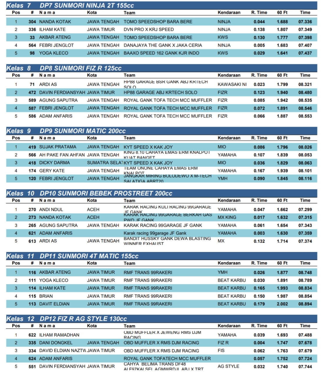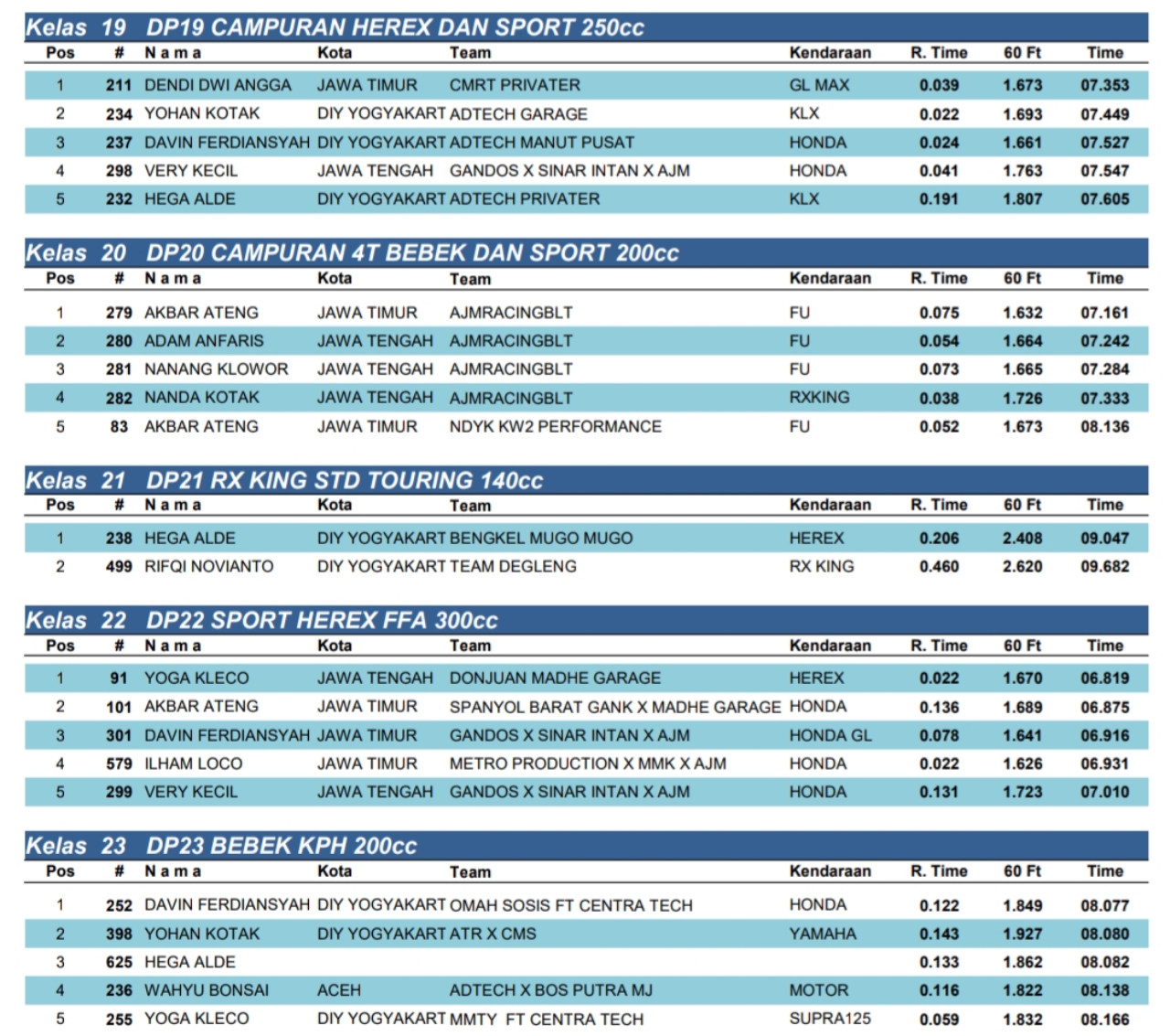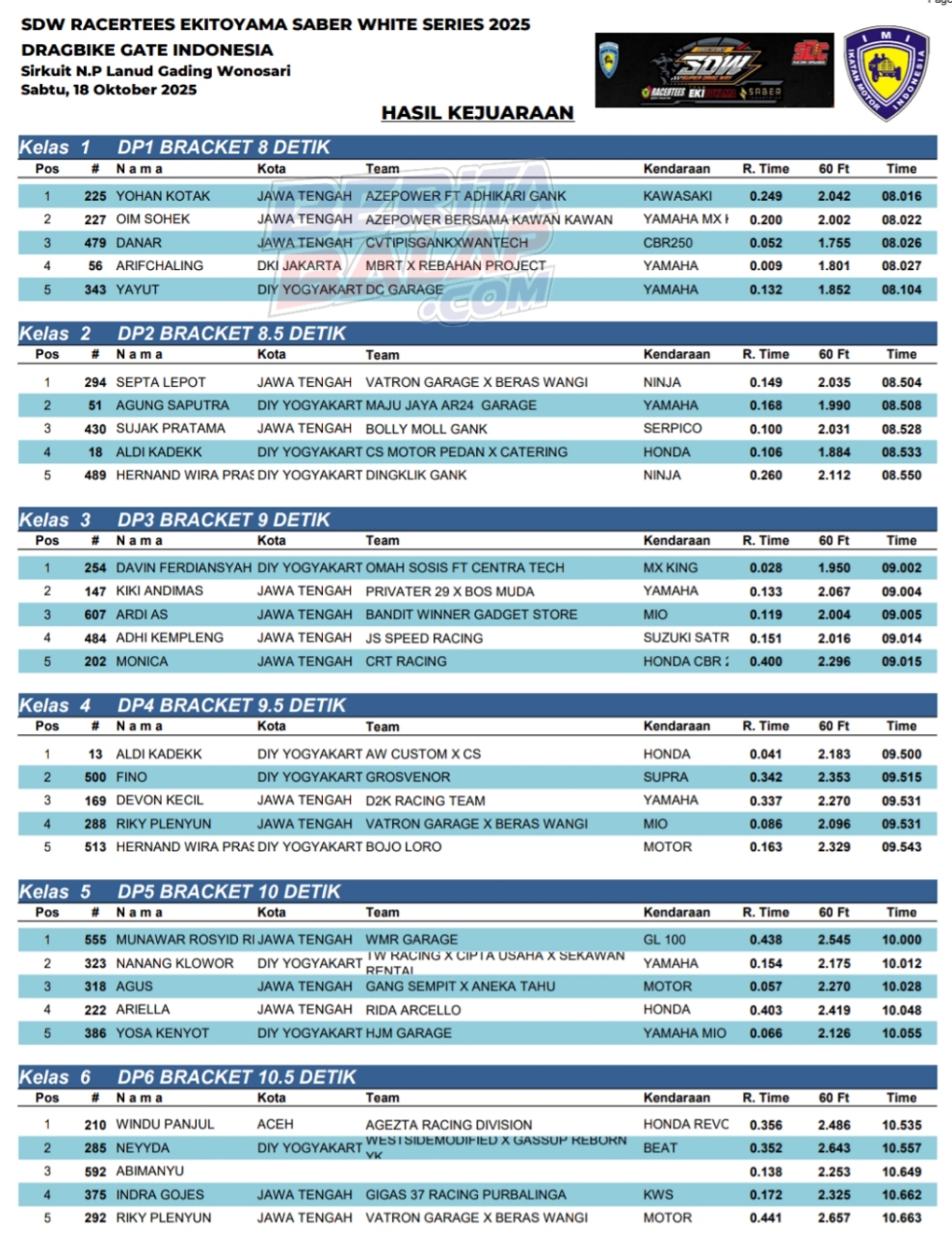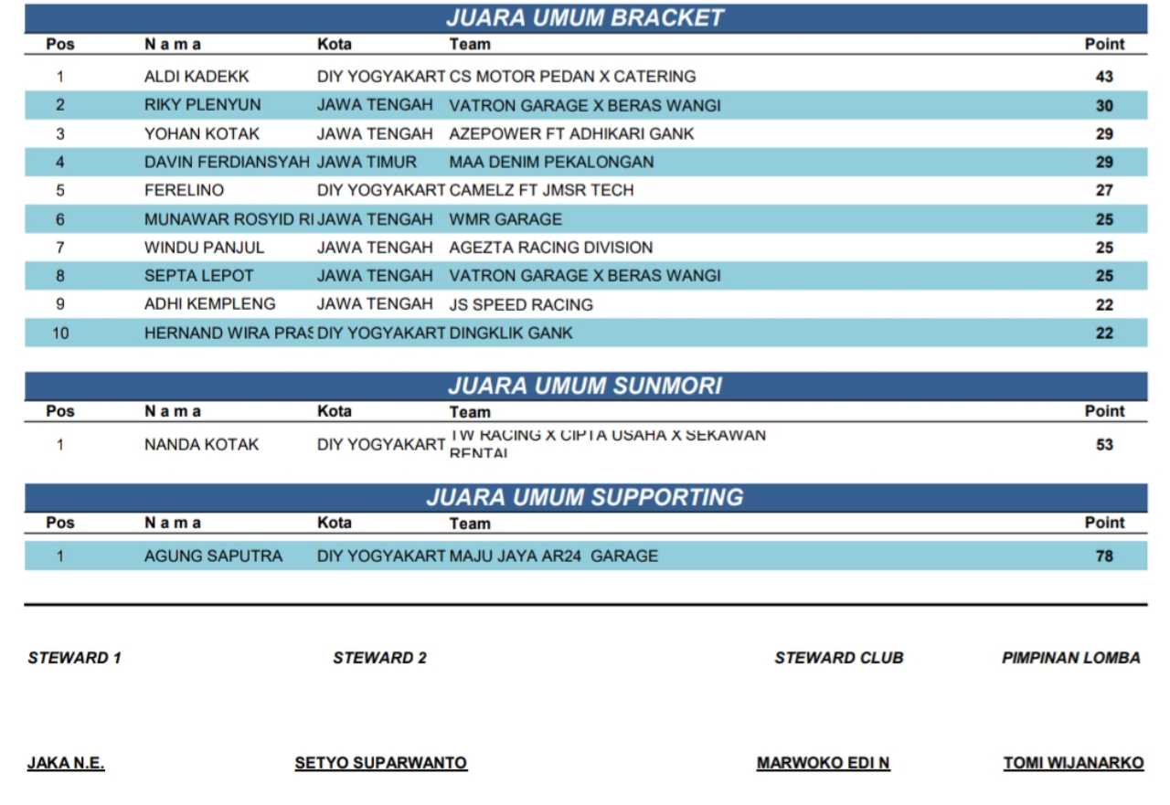 Dragbike Headline 19 Oktober, 2025 Hasil Juara Super Drag Way Putaran Lepas Drag Bike Pemula 2025 Posted By: BeritaBalap.com Hasil Juara Super Drag Way Putaran Lepas Drag Bike Pemula 2025, Hasil SDW Putaran Lepas Drag Bike Pemula 2025, Hasil Super Drag Way Putaran Lepas Drag Bike Pemula 2025 BeritaBalap.com- Berikut ini adalah hasil juara Super Drag Way Putaran Lepas Drag Bike Pemula 2025 yang berlangsung di Sirkuit Non Permanen (NP) Lanud gading Wonosari, Gunung Kidul, Yogyakarta (18/10). Edhot Facebook Comments
