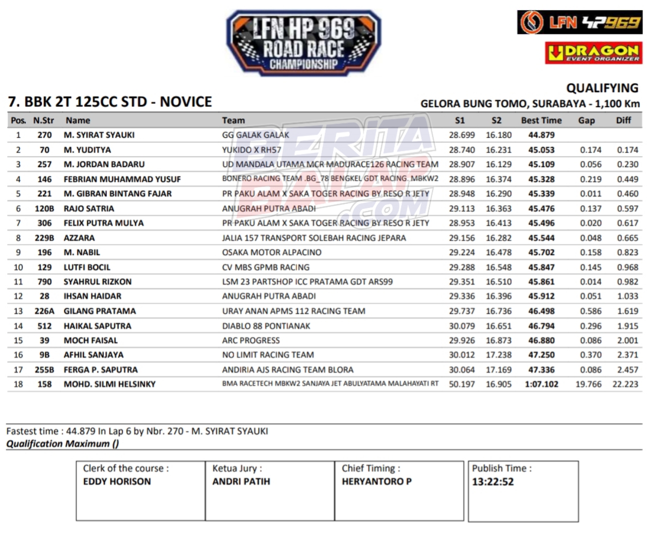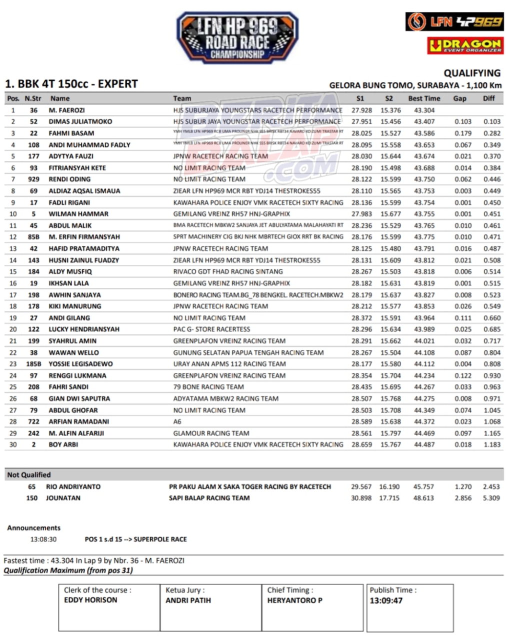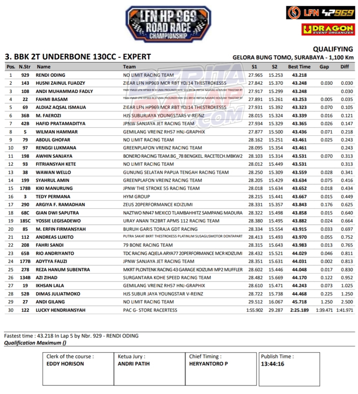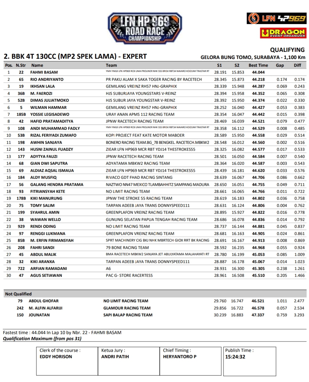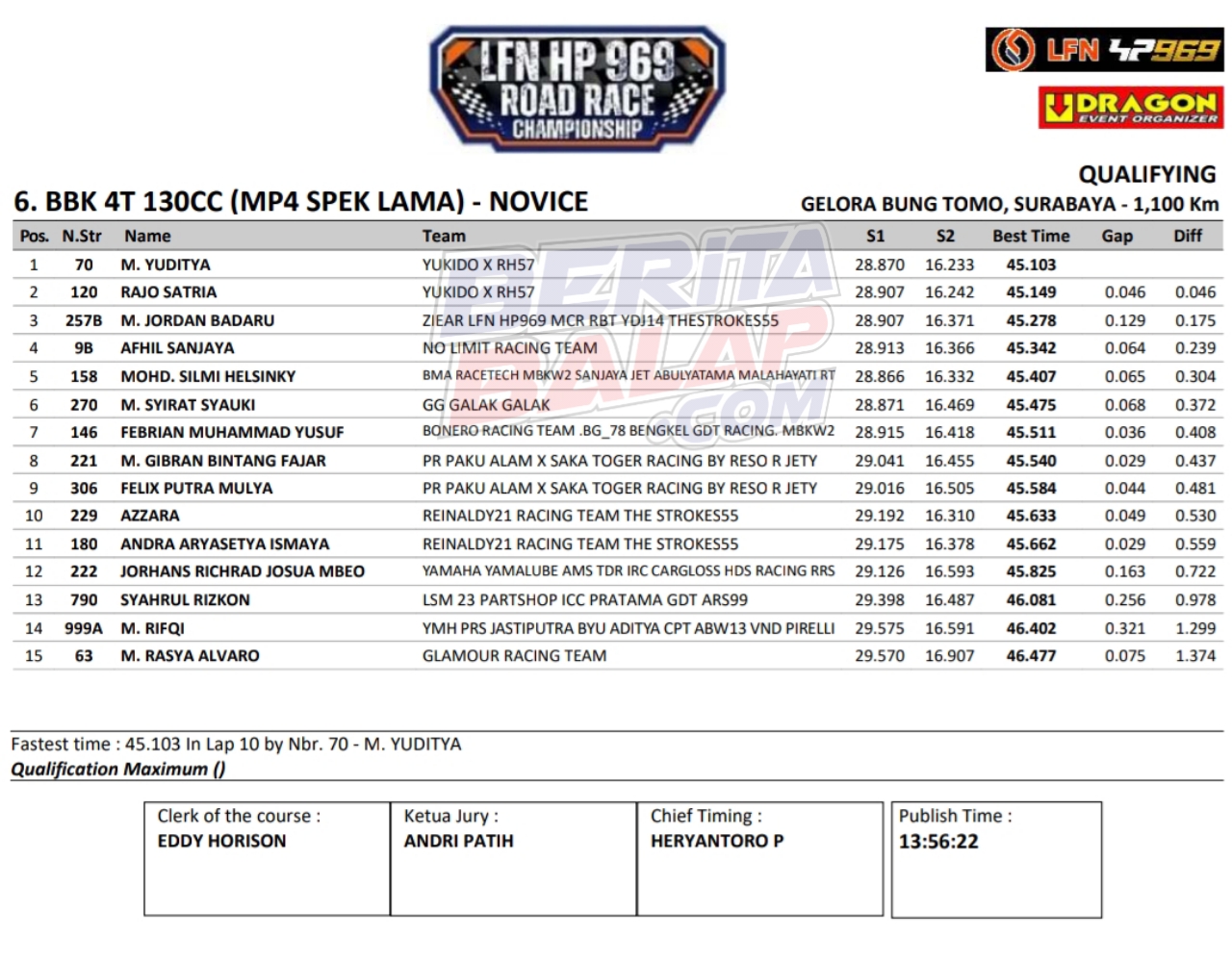 Headline Road Race 8 November, 20258 November, 2025 Hasil Kualifikasi Final LFN HP969 Road Race 2025 Surabaya Posted By: BeritaBalap.com Final LFN HP969 Road Race 2025 Surabaya, Hasil Final LFN HP969 Road Race 2025, Hasil Final LFN HP969 Road Race 2025 Surabaya, Hasil Kualifikasi Final LFN HP969 Road Race 2025 Surabaya BeritaBalap.com- Berikut ini adalah hasil kualifikasi final LFN HP969 Road Race Championship 2025 yang berlangsung dilintasan GBT, Surabaya pada Sabtu, 8 November. Edhot Facebook Comments
