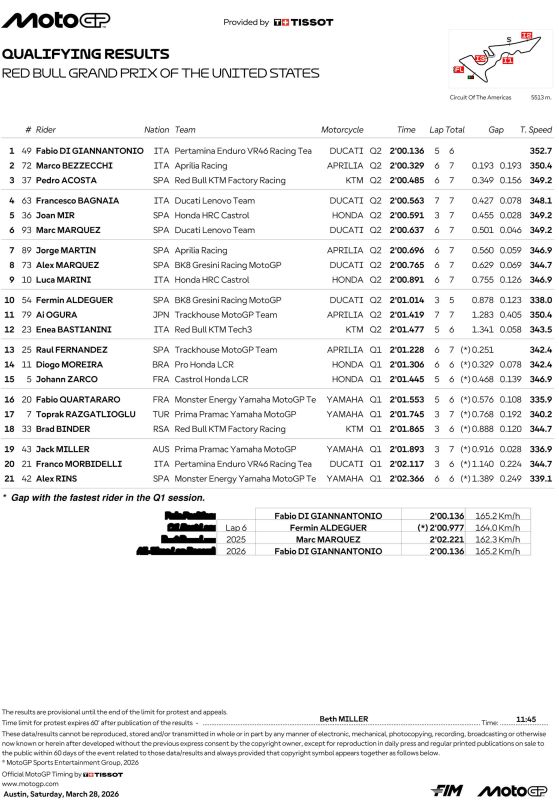 Hasil Kualifikasi MotoGP 2026 Amerika Serikat :