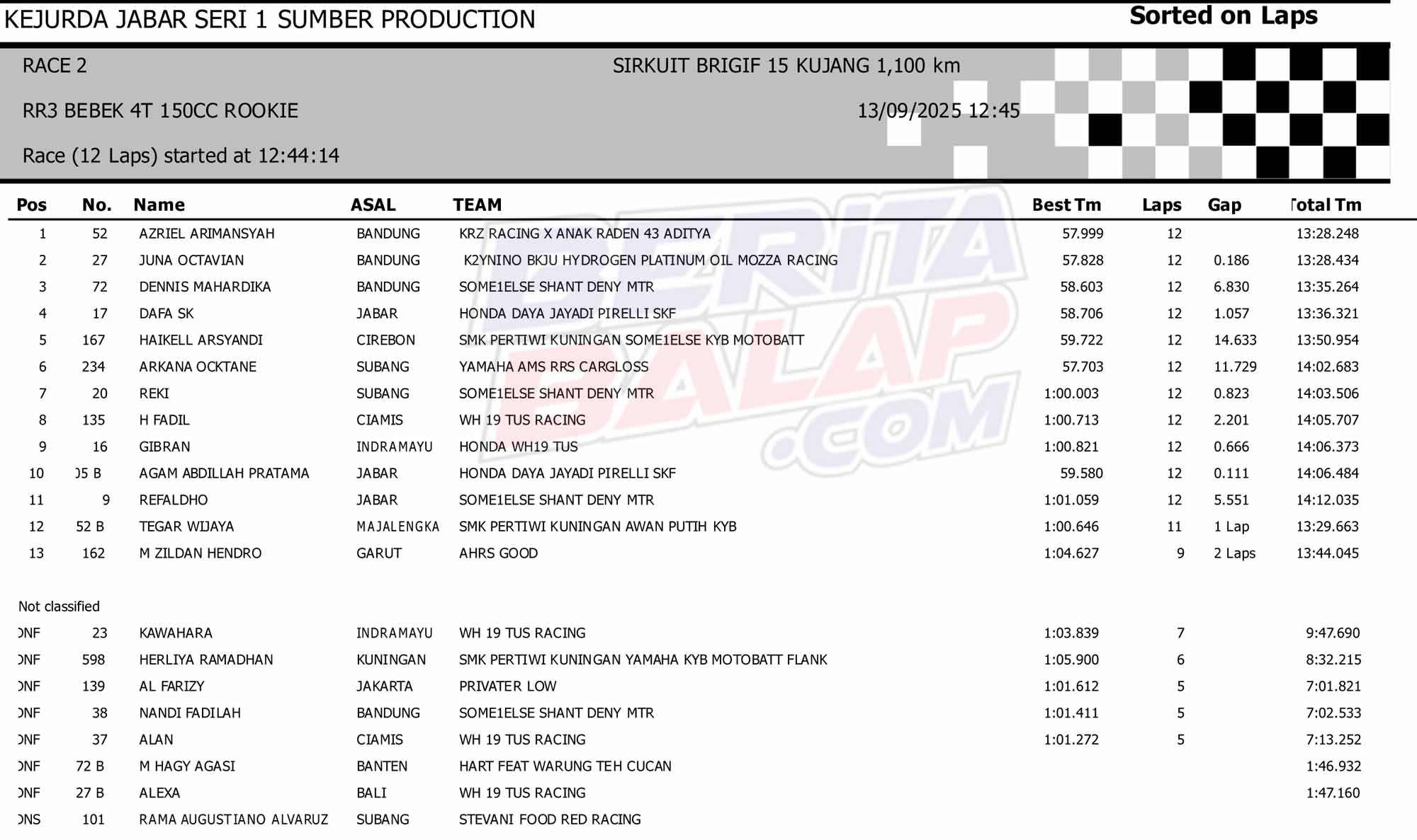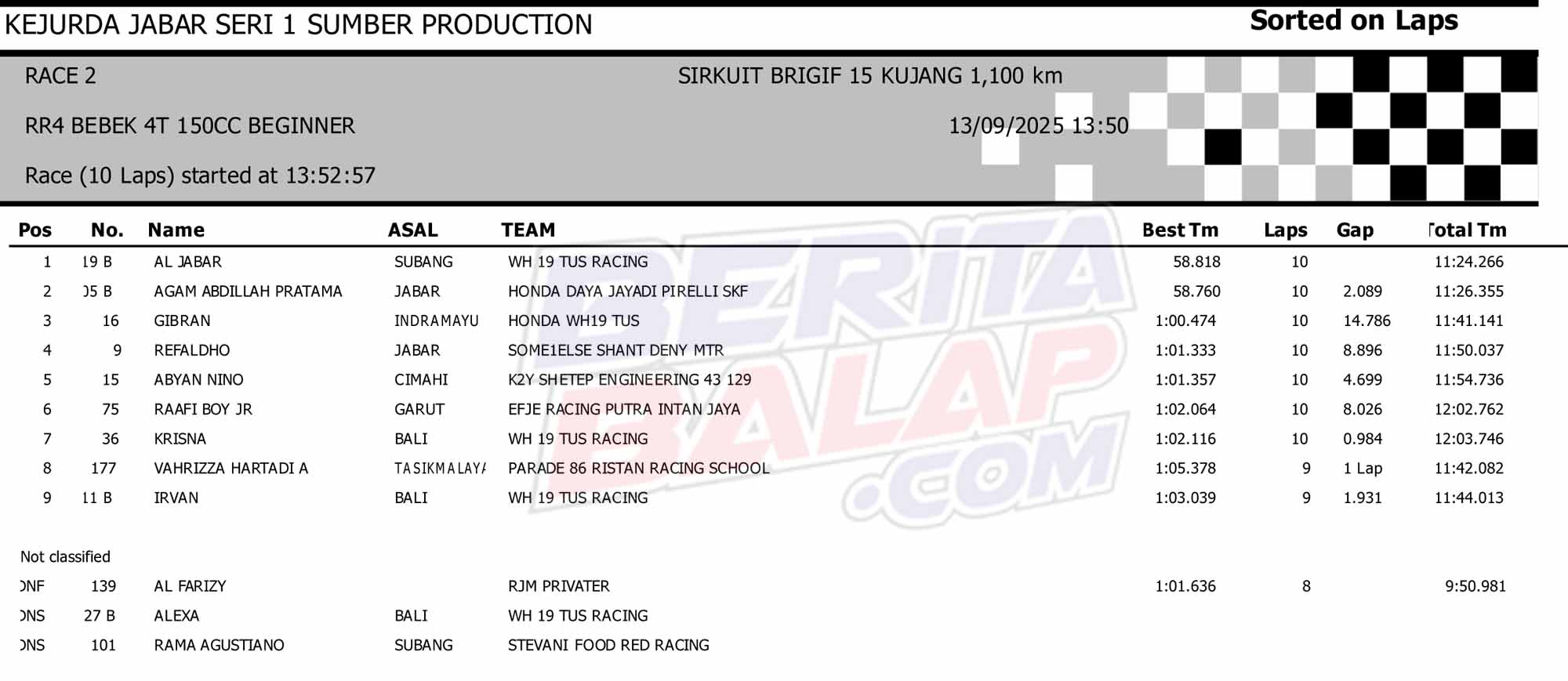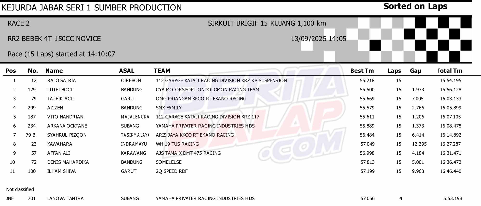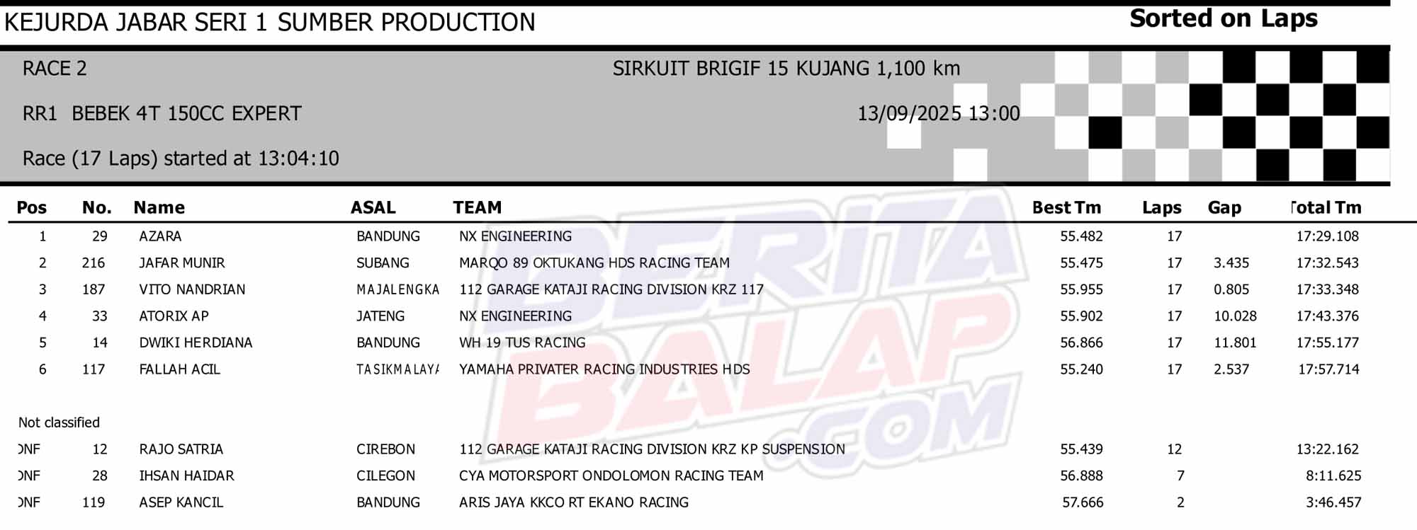 Headline Road Race 13 September, 2025 Hasil Race 2 Kejurda Road Race Jabar 2025 Round 1 Posted By: BeritaBalap.com Hasil Kejurda Road Race Jabar 2025, Hasil Kejurda Road Race Jabar 2025 Round 1, Hasil Race 2 Kejurda Road Race Jabar 2025 Round 1, Kejurda Road Race Jabar 2025 BeritaBalap.com- Berikut ini adalah hasil race 2 Kejurda Road Race Jabar 2025 round 1 yang dikemas apik oleh Sumber Productin diatas lintasan Brigif 15 Kujang II, Cimahi pada Sabtu, 13 September. Edhot Facebook Comments
