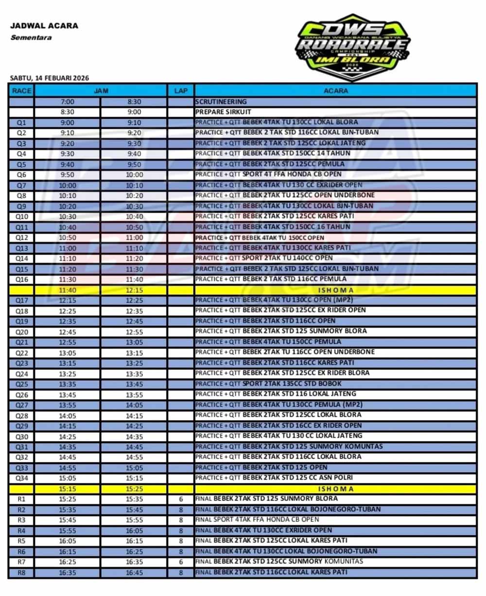 BACA JUGA : Info Road Race Blora (14-15 Feb) Sebelum Bulan Puasa Ramadhan