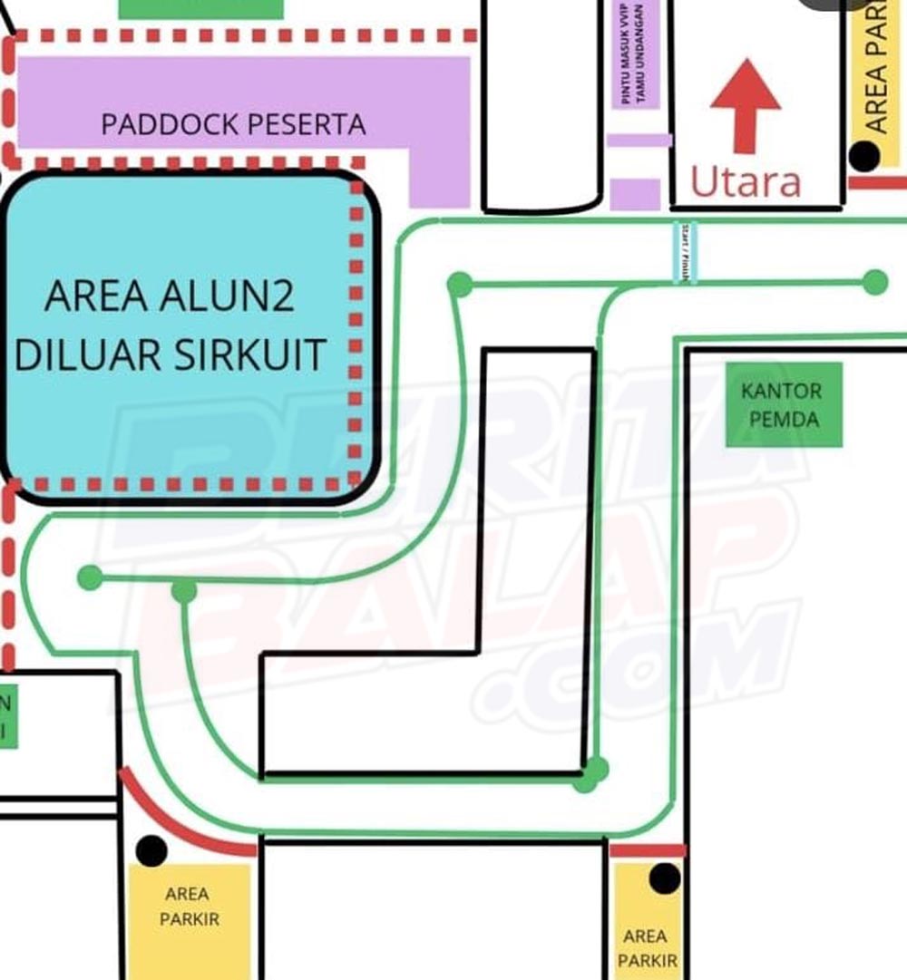 Buat kalian para rider yang akan mengikuti gelaran balap yang menyuguhkan 33 kelas untuk diperlombakan, perhatikan baik-baik lay out treknya. Pasalnya, trek dadakan yang menantang ini bakal menghadirkan 2 tikungan putar balik.