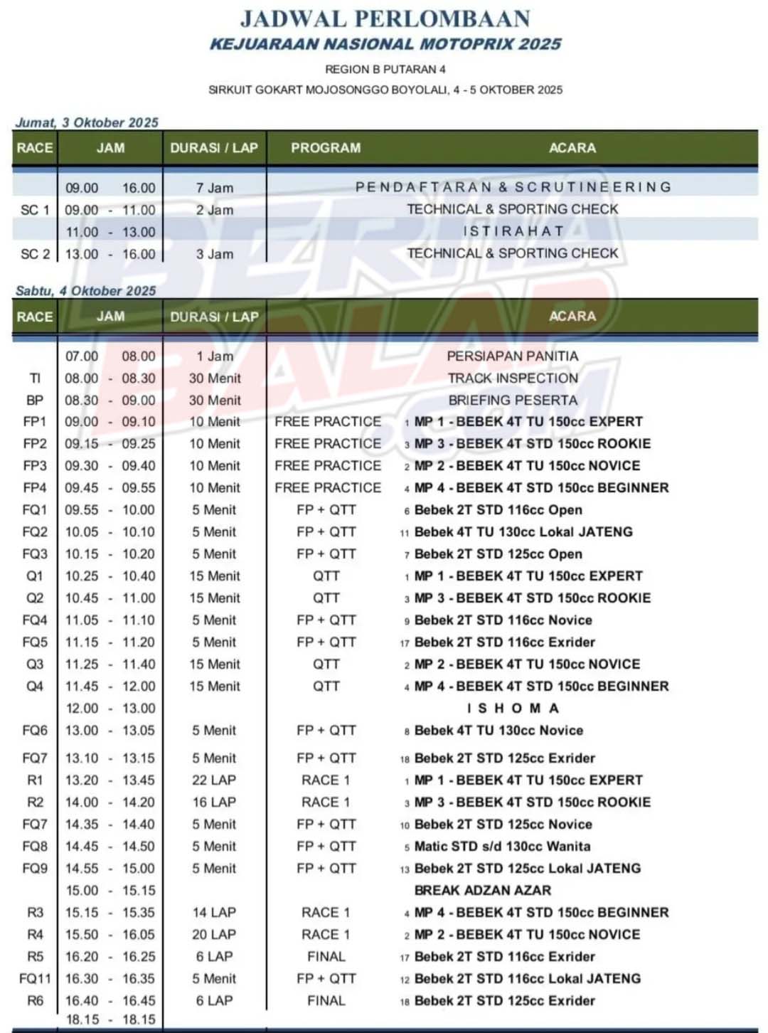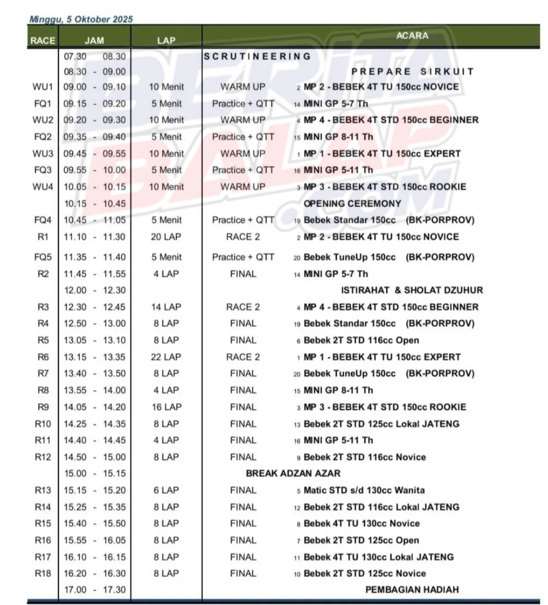 Jadwal Race Motoprix 2025 Boyolali (4-5 Oktober) :