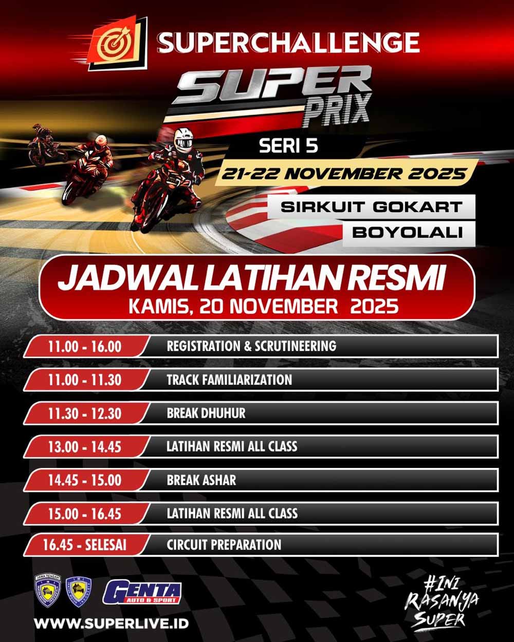 Jadwal Resmi Latihan Final SuperPrix 2025 Boyolali (20 Nov) :