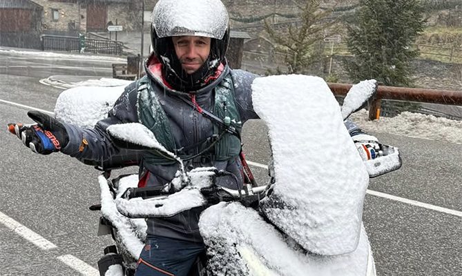 Pernah pula dari rumahnya di Andorra menuju Aragon diatas pacuan Honda X-ADV miliknya bersilinder 750 cc. Nah, yang aktual dimana Zarco menunjukkan bagaimana ia menjalani turing ditengah hujan salju yang terlihat menyelimuti motornya.