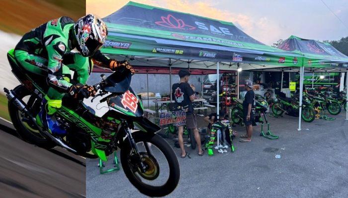 “Beliau itu masih kerabat dari Bos Soleh (owner Sae Group), jadi ikut meramaikan dengan dua motor miliknya, tapi tetap pakai branding Sae Group,” jelas Floreanus Roy selaku manajer tim.