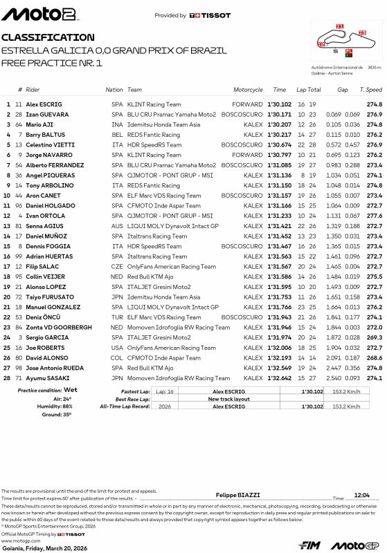 Hasil FP1 Moto2 Brasil :