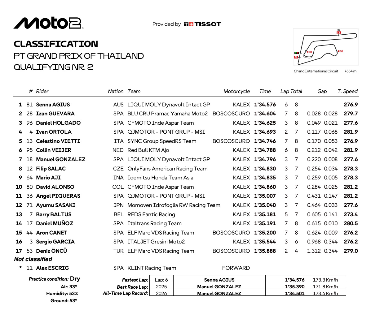 Ada peningkatan signifikan dan konteks ini penting. Saat Moto2 2025 Buriram Thailand, pembalap asal Magetan usia jelang 22 tahun (16 Maret) ada di grid ke-14 hasil Q2.