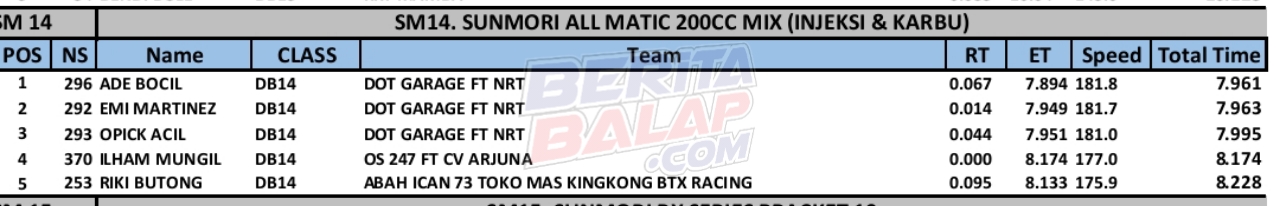 ‎Sedangkan peraih podium ke-4 dan ke-5 masih bermain diangka 8,1 dan 8,2 detikan. “Alhamdulillah, bisa tembus podium 1, 2 dan 3. Terimakasih buat owner, mekanik dan crew yang sudah selalu memberikan support dan dukungan terbaiknya,” tukas Emi Martinez yang diamini Ade Bocil dan Opick Acil. Edhot