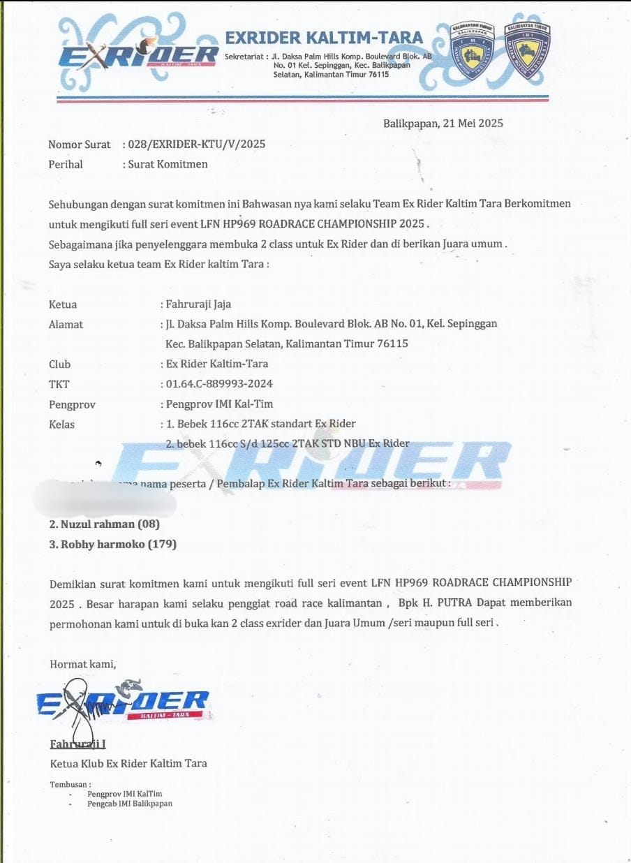 Sekilas informasi saja, melalui koordinasi dan komunikasi aktif dalam komunitas Ex Rider Indonesia, Nuzul Rahman bersama Ketua Ex Rider Kaltim-tara menginisiasi pembukaan 2 kelas khusus Ex Rider di ajang LFN Championship.