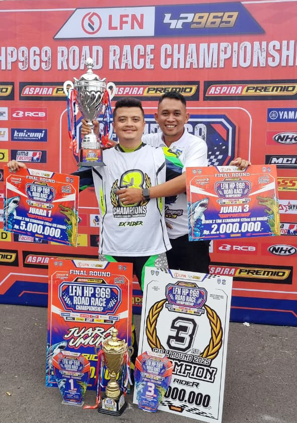BeritaBalap.com-Menarik dicermati pencapaian spesial dari Nuzul Rahman, pembalap Ex Rider asal Kalimantan Timur (Kaltim) yang menembus posisi ke-3 dalam klasemen akhir gelaran LFN HP969 Road Race Championship 2025 yang sudah berakhir di Sirkuit GBT Surabaya, pekan lalu (9 Nov).