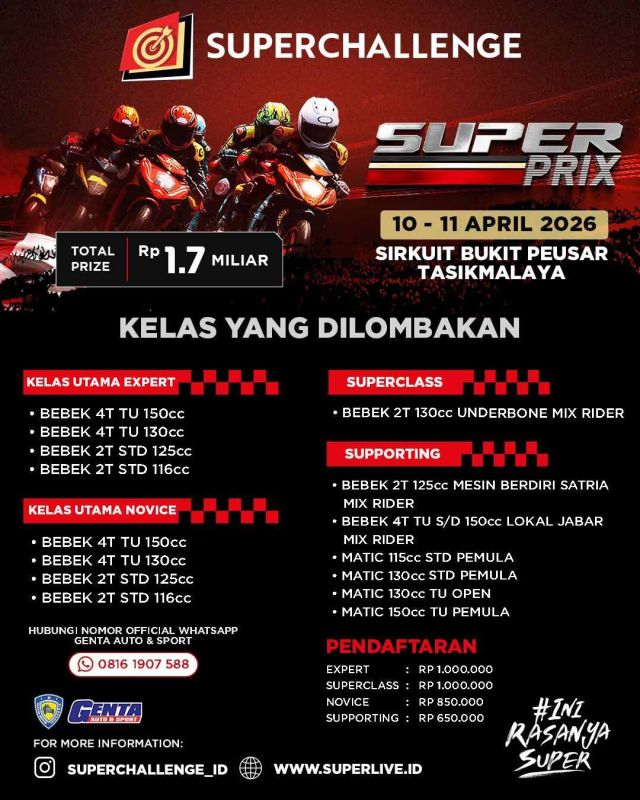 Jadwal Race & Daftar Kelas Superprix 2026 Seri 1 Tasikmalaya :
