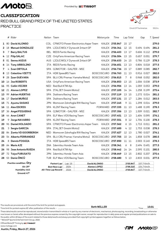 Hasil Practice Moto2 :