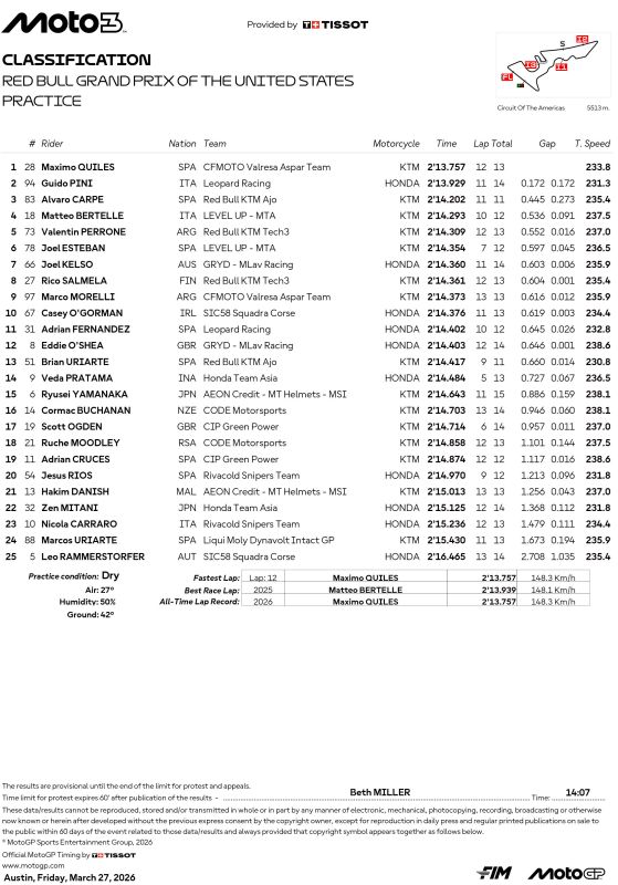 Hasil Practice Moto3 :