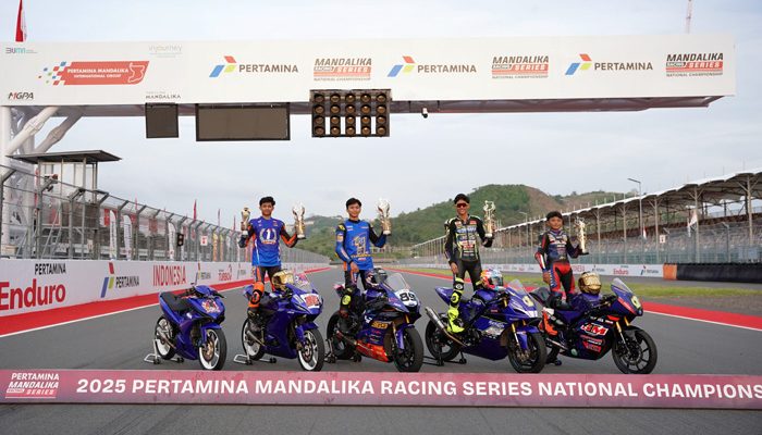 BeritaBalap.com- Yamaha membuktikan DNA Racing yang sangat kuat direalisasikan di panggung balap nasional dengan menyapu bersih gelar juara 5 kelas Kejurnas Mandalika Racing Series (MRS) 2025. Hasil pamungkas tersebut terwujud setelah berakhirnya seri 5 atau putaran penutup di sirkuit internasional Mandalika, 1-2 November 2025.
